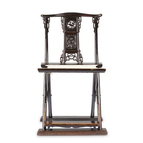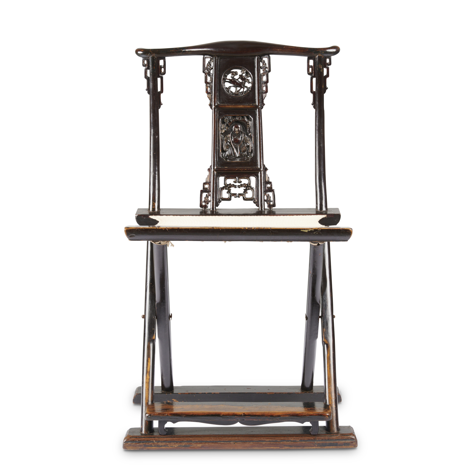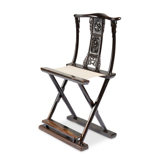 A CHINESE BLACK LACQUER AND CARVED FOLDING CHAIR, QING DYNASTY, 18TH/19TH CENTURY