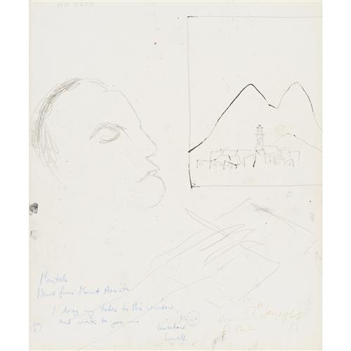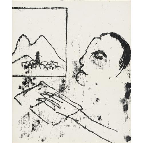 SIDNEY NOLAN (1917-1992) (Shakespeare Sonnets Man and Winged Skull) c.1963 mixed media on paper 63.5 x 52cm