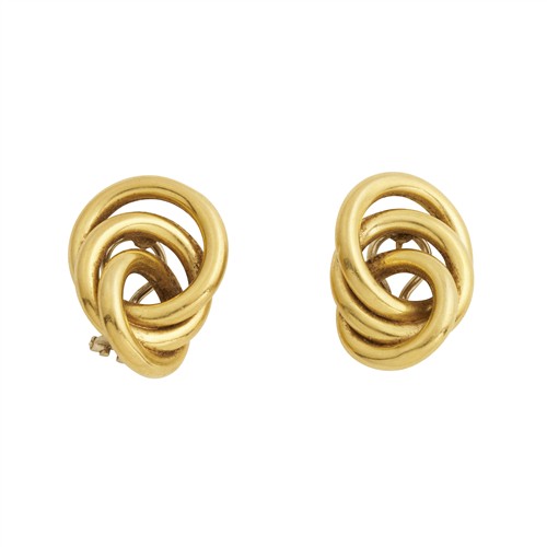 Each comprising an inter-connected knot of three tubular formations to a post and European clip, length approximately 33mm, width approximately 25mm, gross weight approximately 16.7 grams.