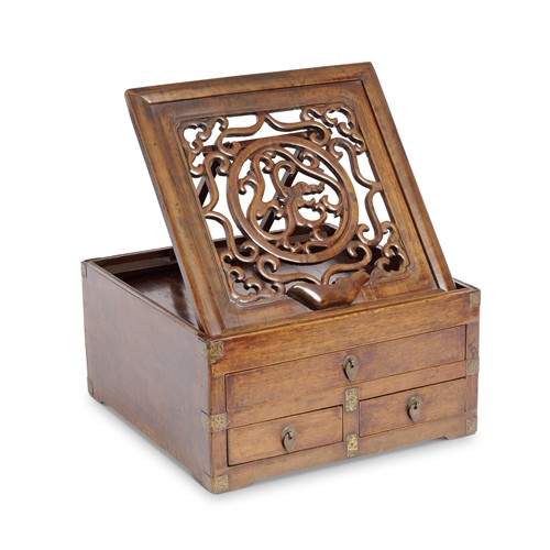 A CHINESE WALNUT DRESSING CASE WITH FOLDING OPENWORK MIRROR STAND, QING DYNASTY, 18TH/19TH CENTURY