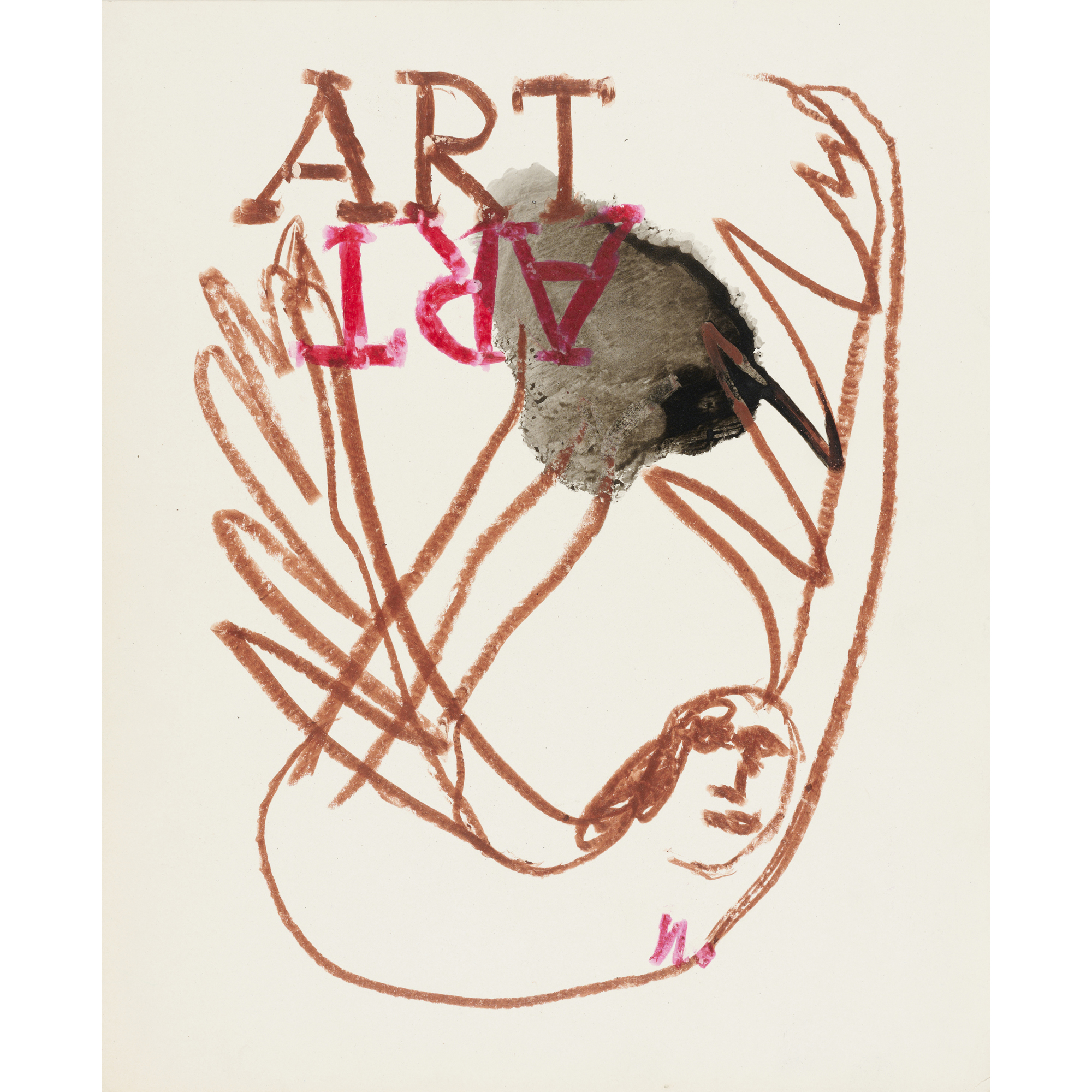 SIDNEY NOLAN (1917-1992) (Shakespeare Sonnets Man and Winged Skull) c.1963 mixed media on paper 63.5 x 52cm