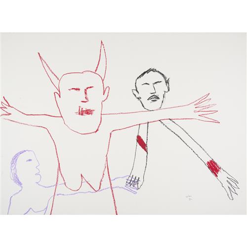SIDNEY NOLAN (1917-1992) (Riders in the Chariot, Patrick White) c.1961 mixed media on paper 64 x 52cm