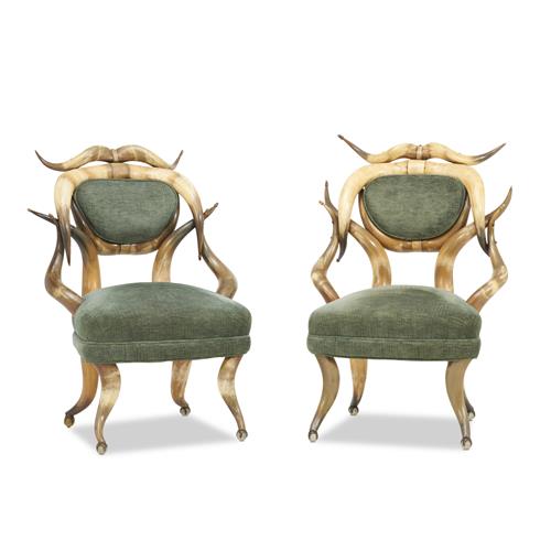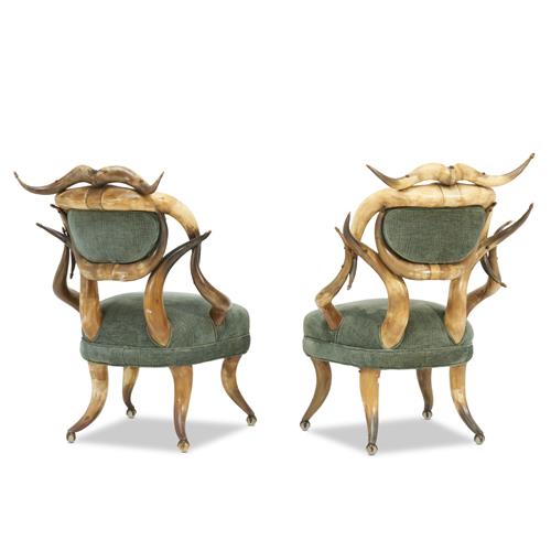 A PAIR OF ANTIQUE NORTH AMERICAN BUFFALO HORN CHAIRS