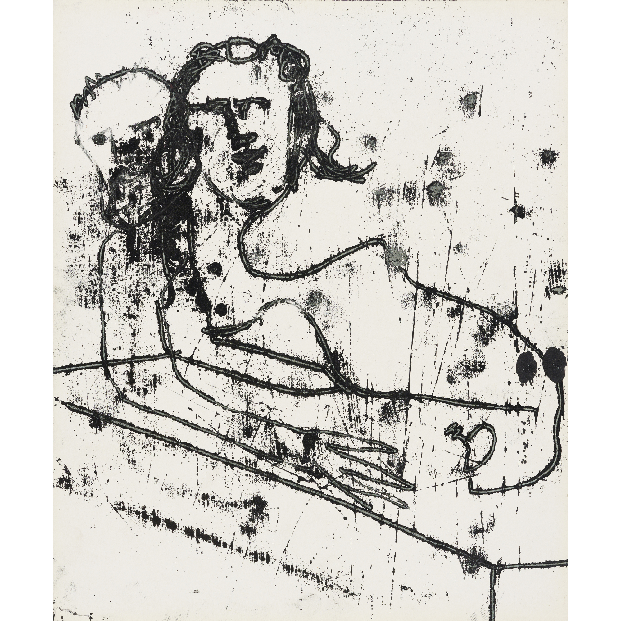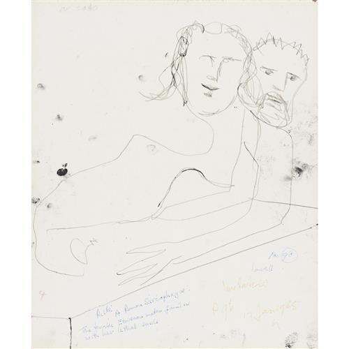SIDNEY NOLAN (1917-1992) (Shakespeare Sonnets Man and Winged Skull) c.1963 mixed media on paper 63.5 x 52cm