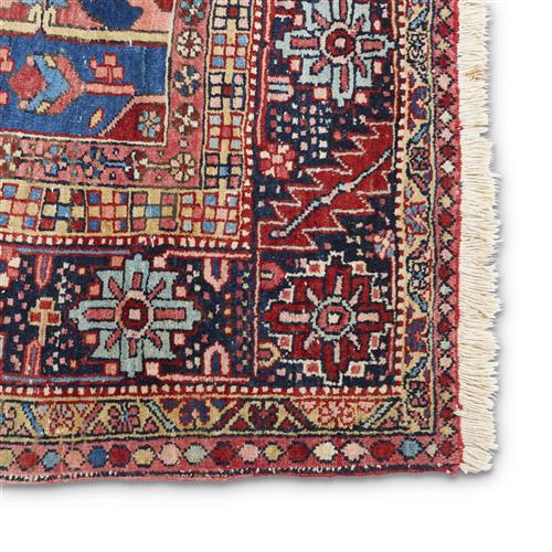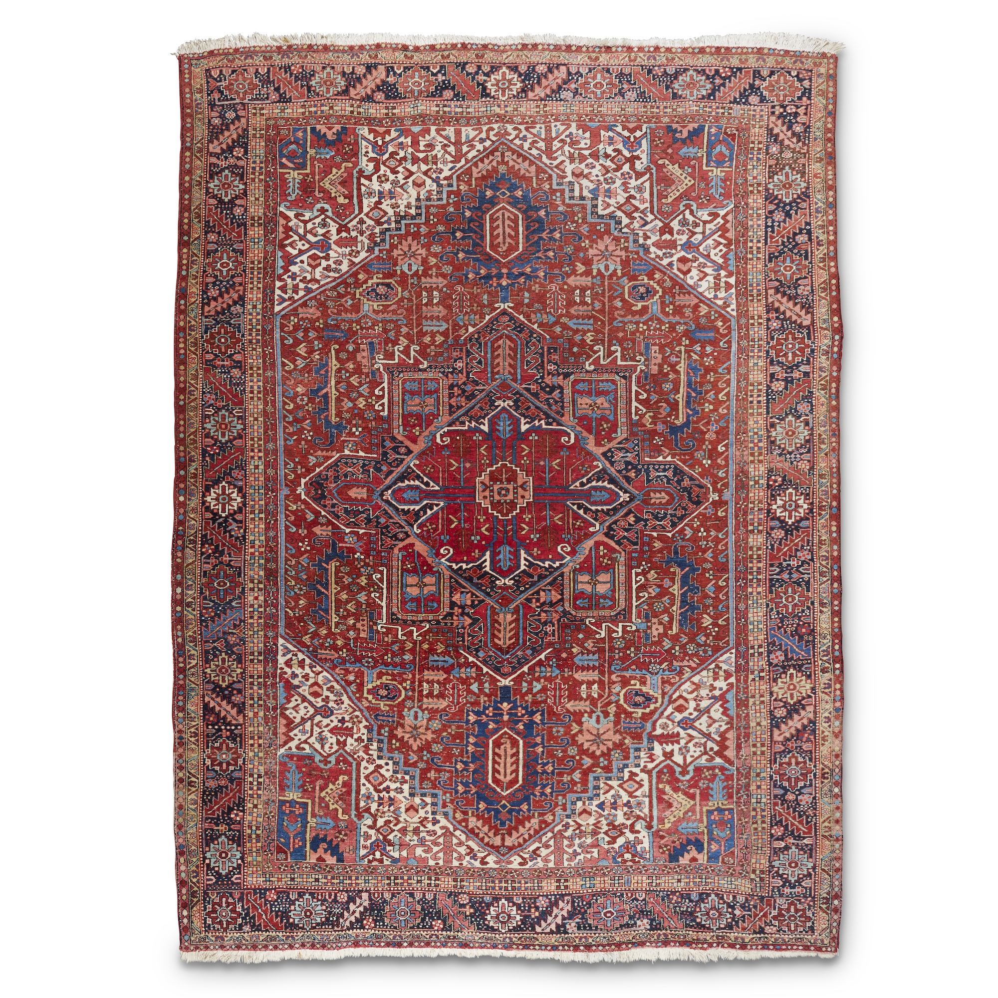 The field of typical Heriz design and colour in geometric style within the rosette and leaf main border