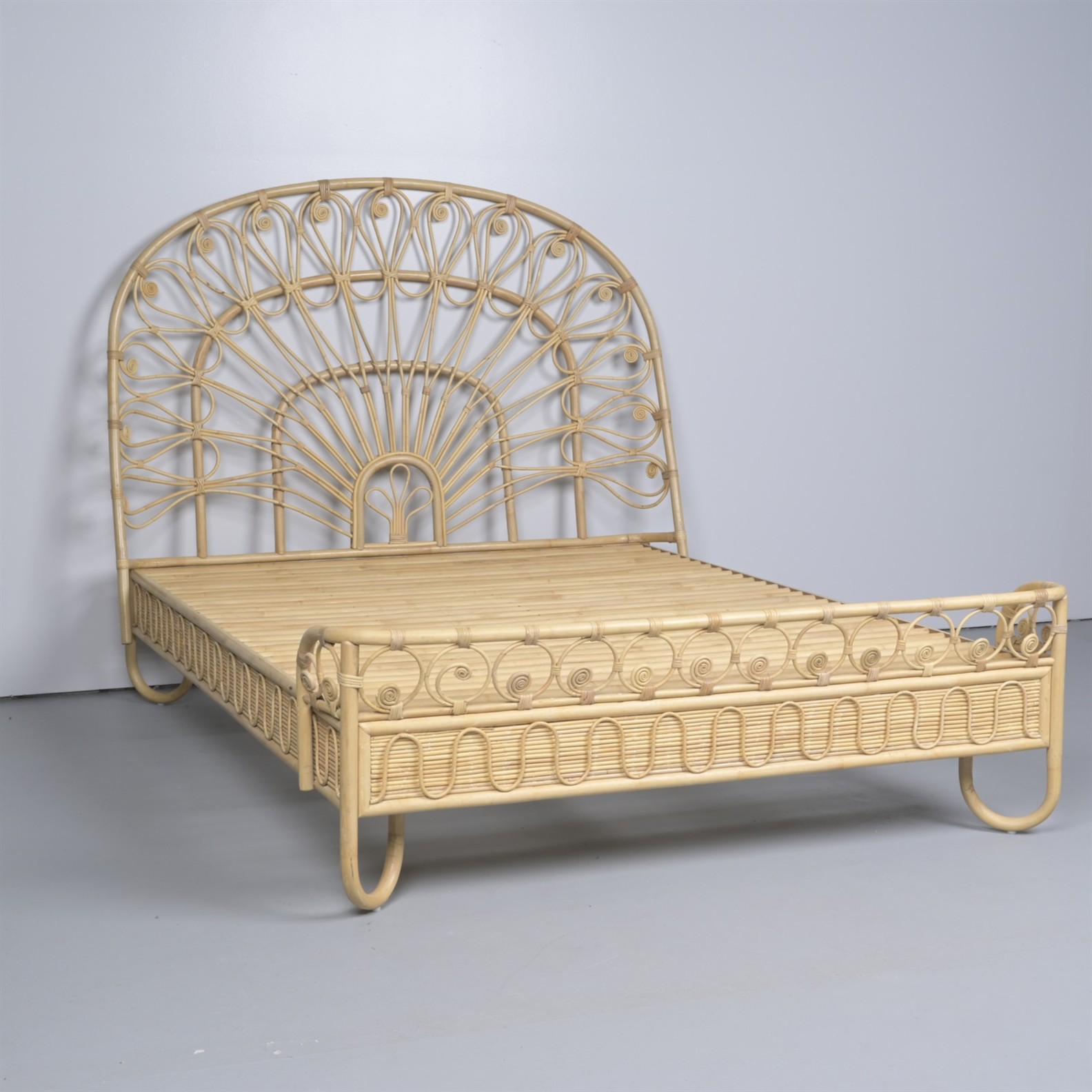 A CONTEMPORARY BAMBOO QUEEN BED (136CM H X 214CM W X 163CM D)