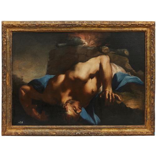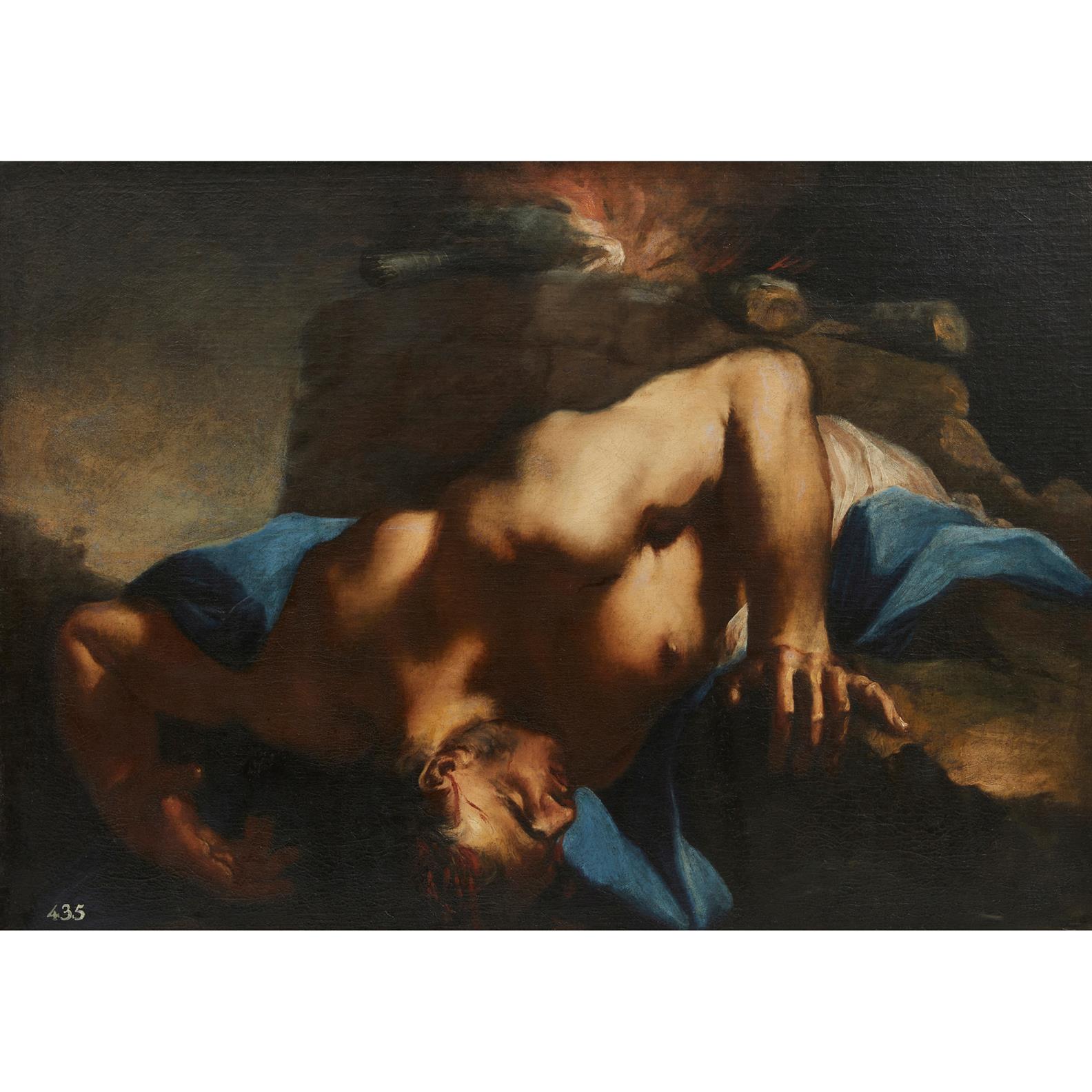 Piazzetta was a student of Antonio Molinari (1655-1704), one of the leading tenebrosin of Venice. Along with its pendant painting The Good Samaritan, (1) the Death of Abel is thought to be one of Piazzetta's earliest extant works. He has chosen the Old Testament subject and balanced it with of a scene from the New Testament, both of which rely on recumbent figures for the dead Abel and the wounded Samaritan; a pose which could be easily sustained by a model for a period of time allowing for concentrated study, as well as the complex disposition of the limbs a signifier of the young painter's ability to successfully render the modelling and foreshortening of the body as part of an artistic composition. A rare survival from Piazzetta's formative years, the Death of Abel is the result of the intense training undergone by the young painter.