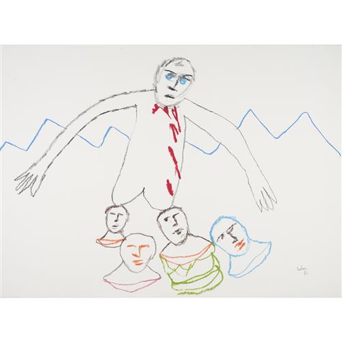 SIDNEY NOLAN (1917-1992) (Shakespeare Sonnets Man and Winged Skull) c.1963 mixed media on paper 63.5 x 52cm