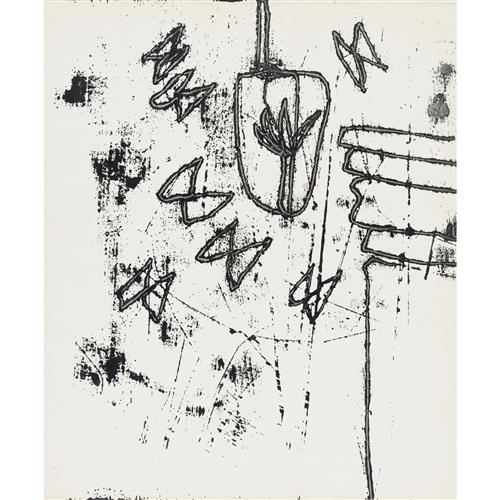 SIDNEY NOLAN (1917-1992) (Shakespeare Sonnets Man and Winged Skull) c.1963 mixed media on paper 63.5 x 52cm