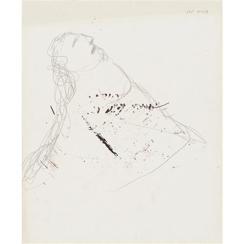SIDNEY NOLAN (1917-1992) (Shakespeare Sonnets Man and Winged Skull) c.1963 mixed media on paper 63.5 x 52cm