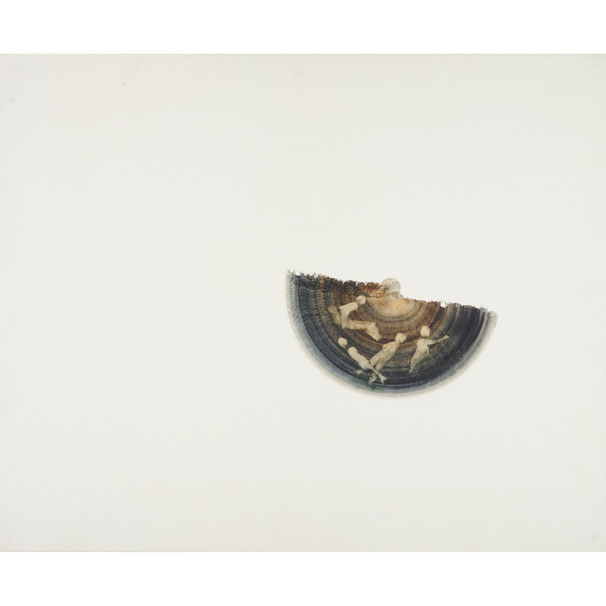 The work is in overall good condition consistent with age. All markings and textures are considered to be inherent. Handling marks and multiple pigment spots all likely from the artist's studio. Creases to margins and to the right of the artwork. The work is backed and wrapped for protection.