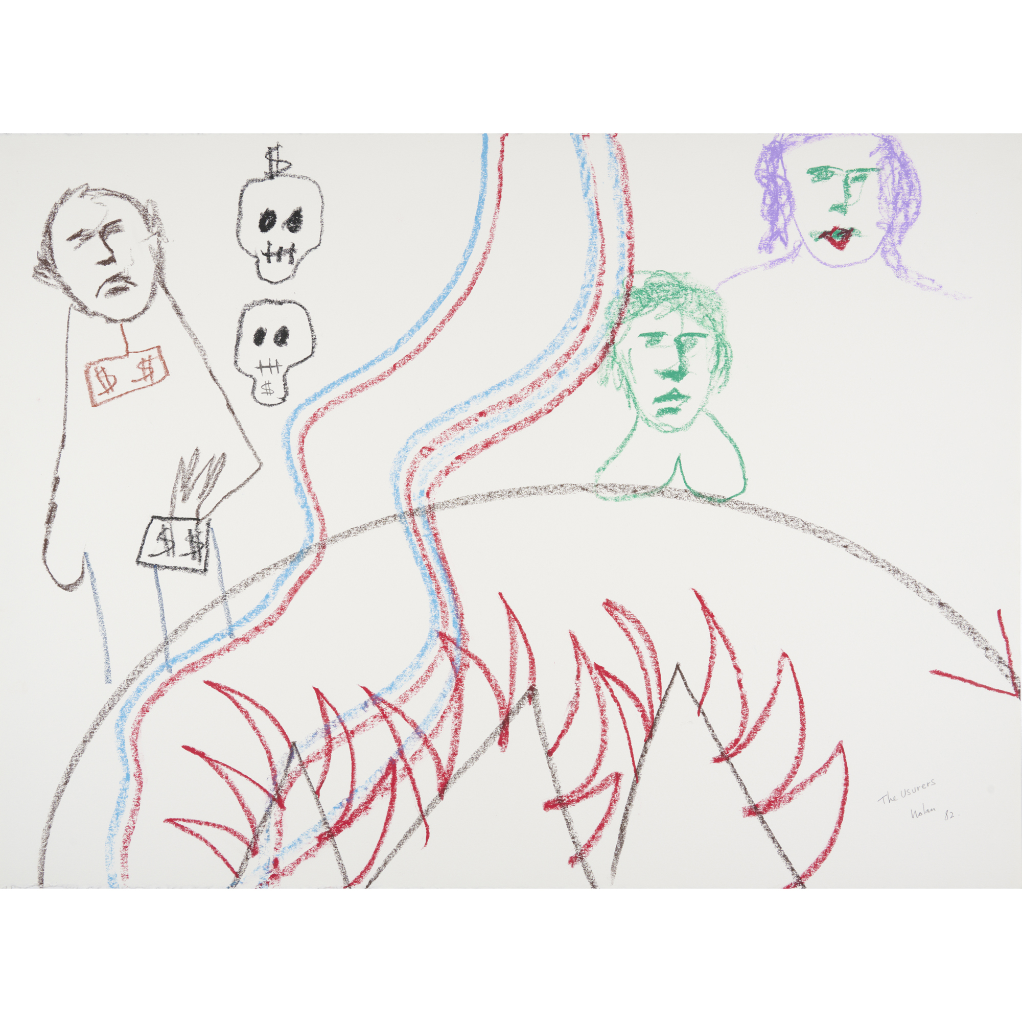 SIDNEY NOLAN (1917-1992) (Shakespeare Sonnets Man and Winged Skull) c.1963 mixed media on paper 63.5 x 52cm