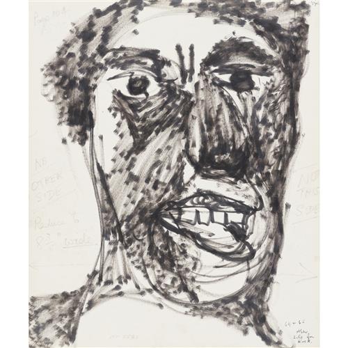 SIDNEY NOLAN (1917-1992) (Shakespeare Sonnets Man and Winged Skull) c.1963 mixed media on paper 63.5 x 52cm