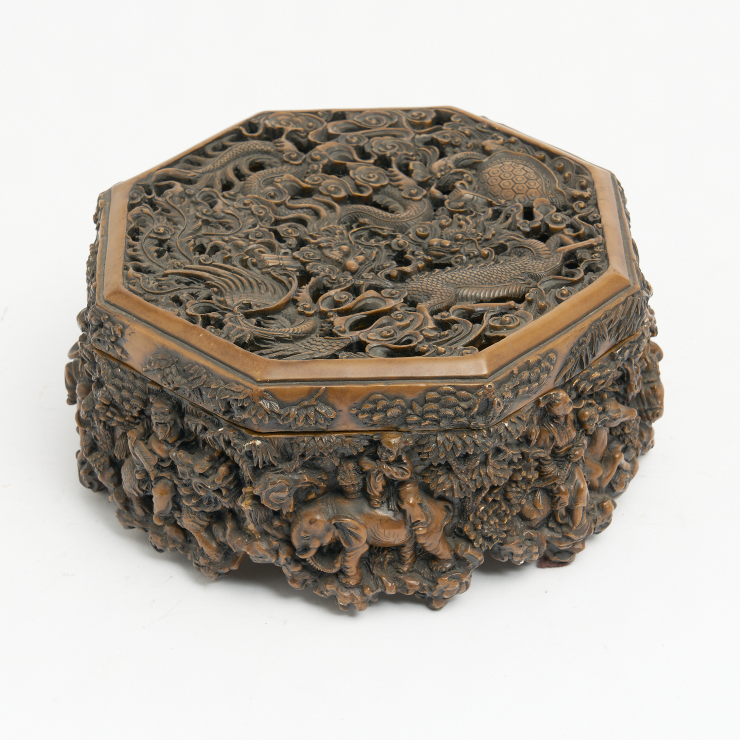 A DRAGON ADORNED RETICULATED RESIN TABLE BOX (A/F)