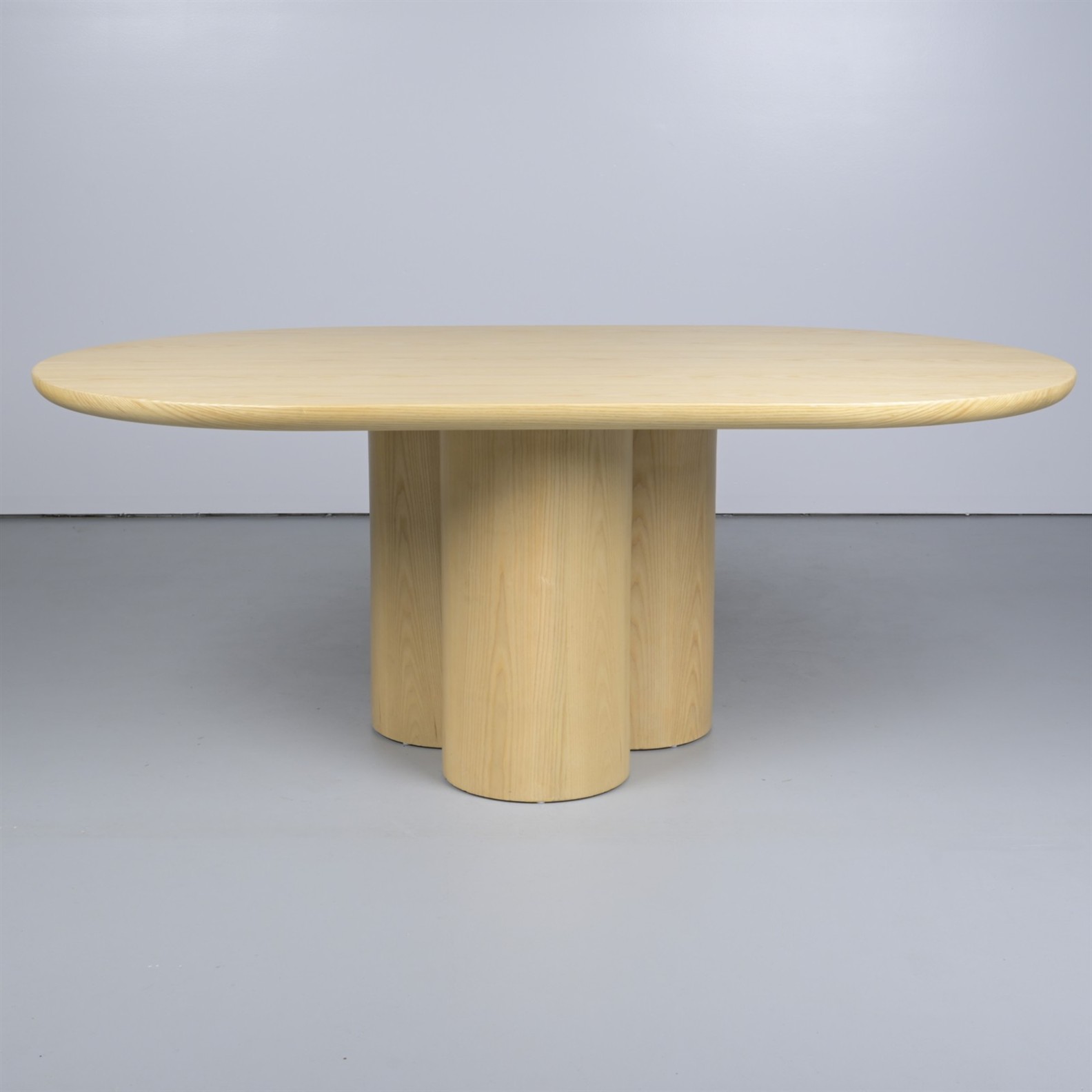 A CONTEMPORARY OVAL 'CAPRI' HARDWOOD DINING TABLE (76H X 200W X 120D CM) (THIS ITEM MUST BE REMOVED BY PROFESSIONAL CARRIERS OR CLIENTS. LEONARD JOEL STAFF CANNOT ASSIST WITH CARRYING OR DELIVERY OF THIS ITEM)