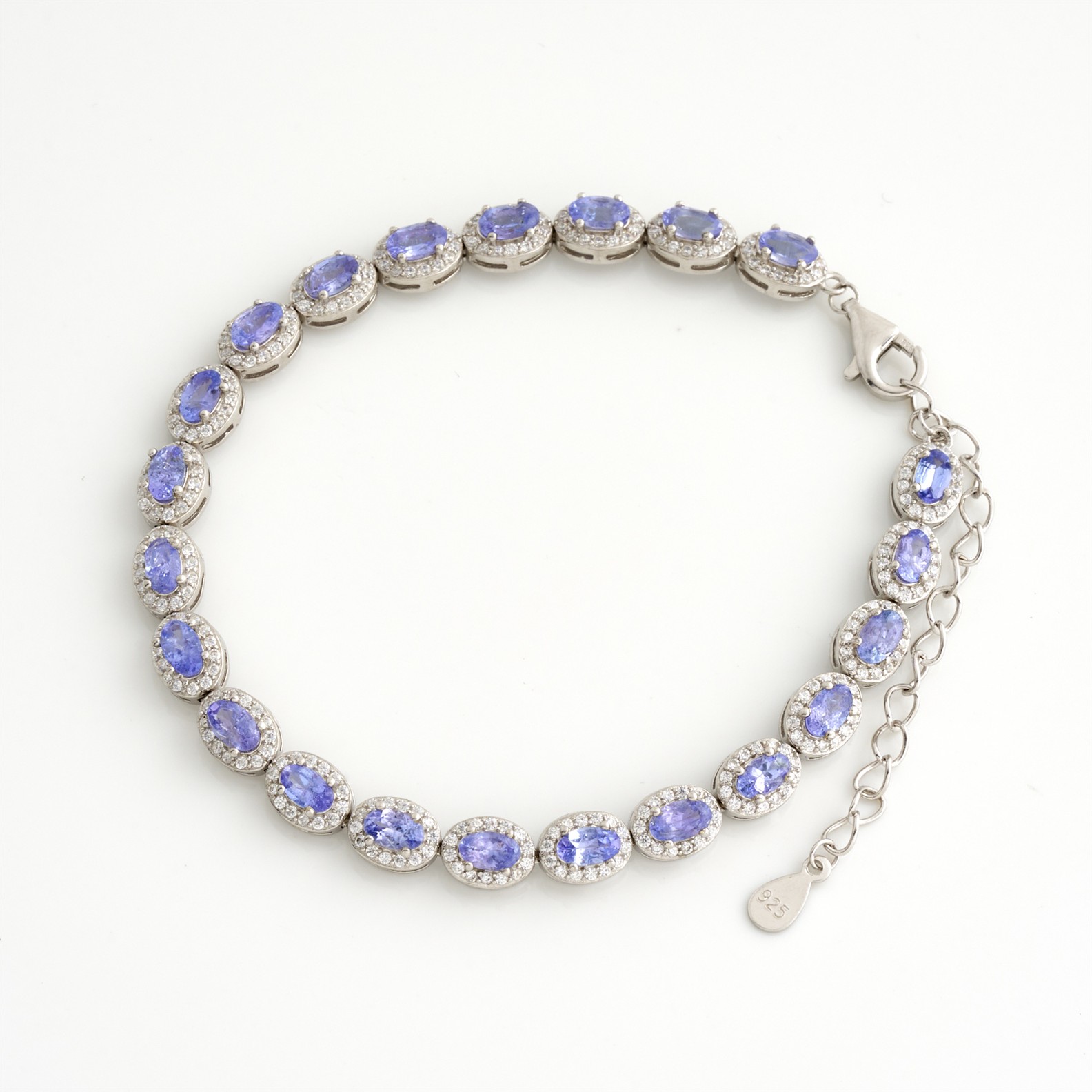 A TANZANITE AND GEM SET BRACELET IN STERLING SILVER, 180-230MM