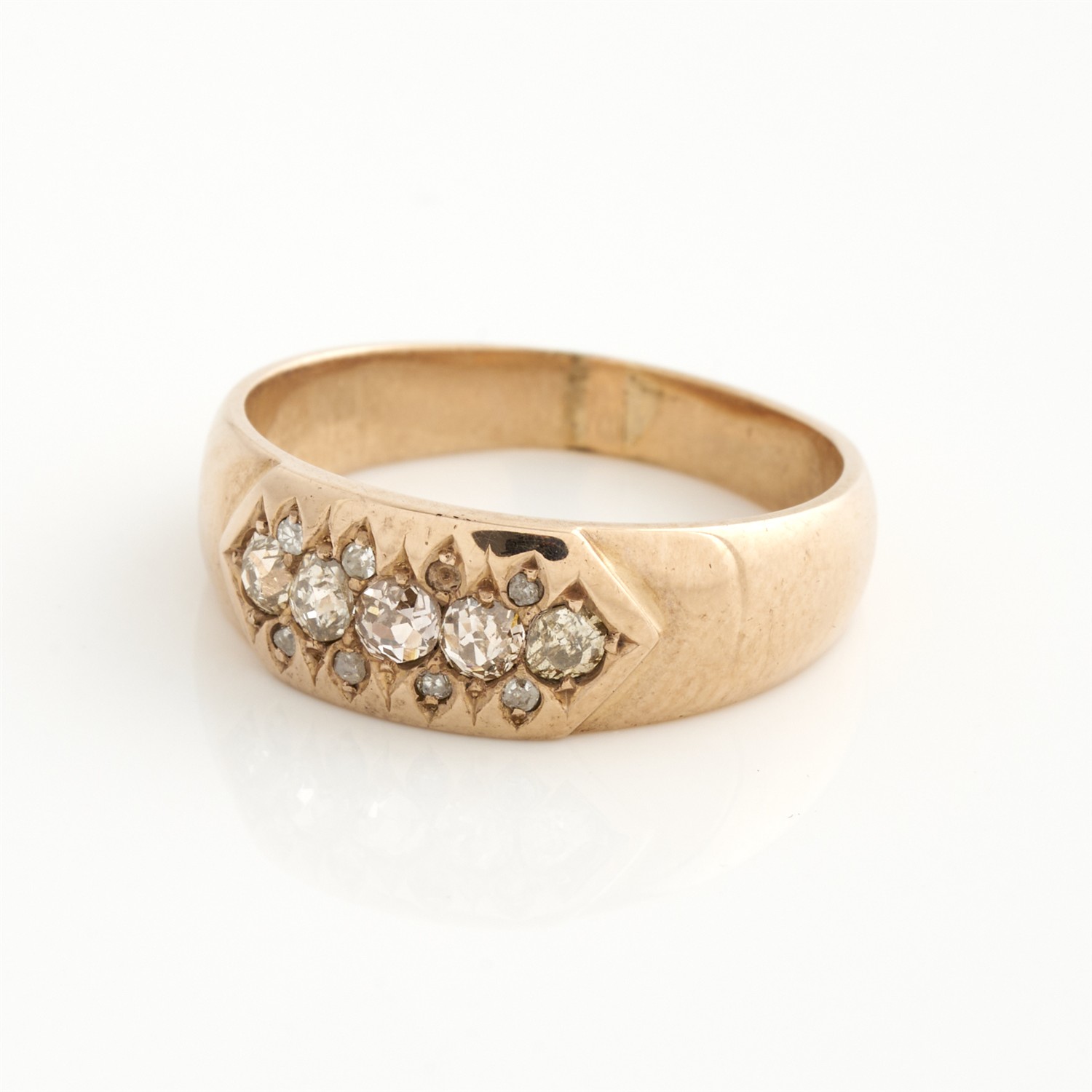 AN OLD CUT DIAMOND BAND IN 8CT GOLD, SIZE Q 1/2, 4.2GMS