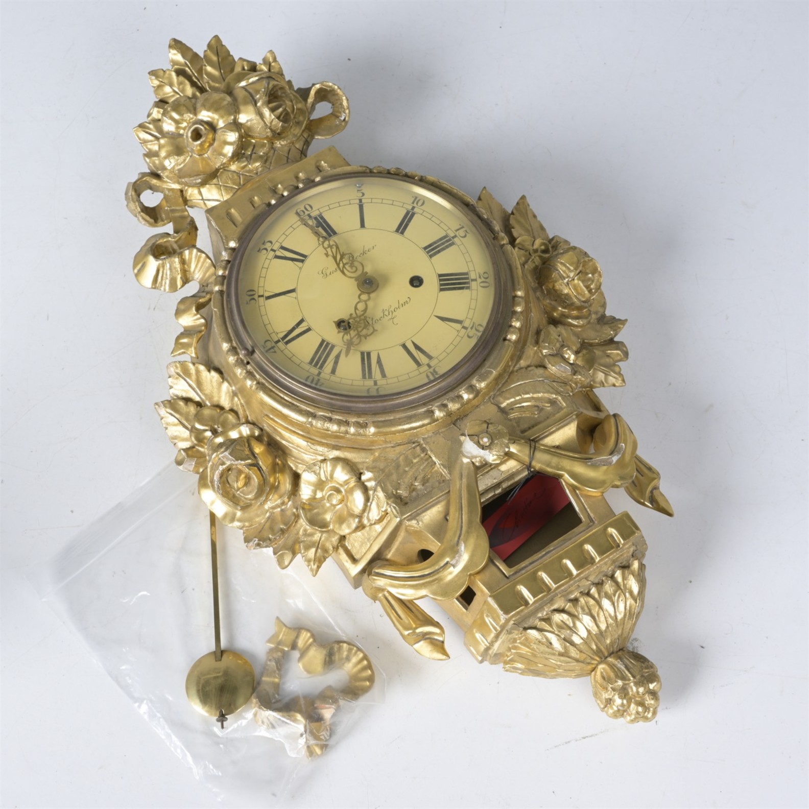A GUSTAVE BECKER CARTEL CLOCK (A/F) (68CM H X 36CM W)