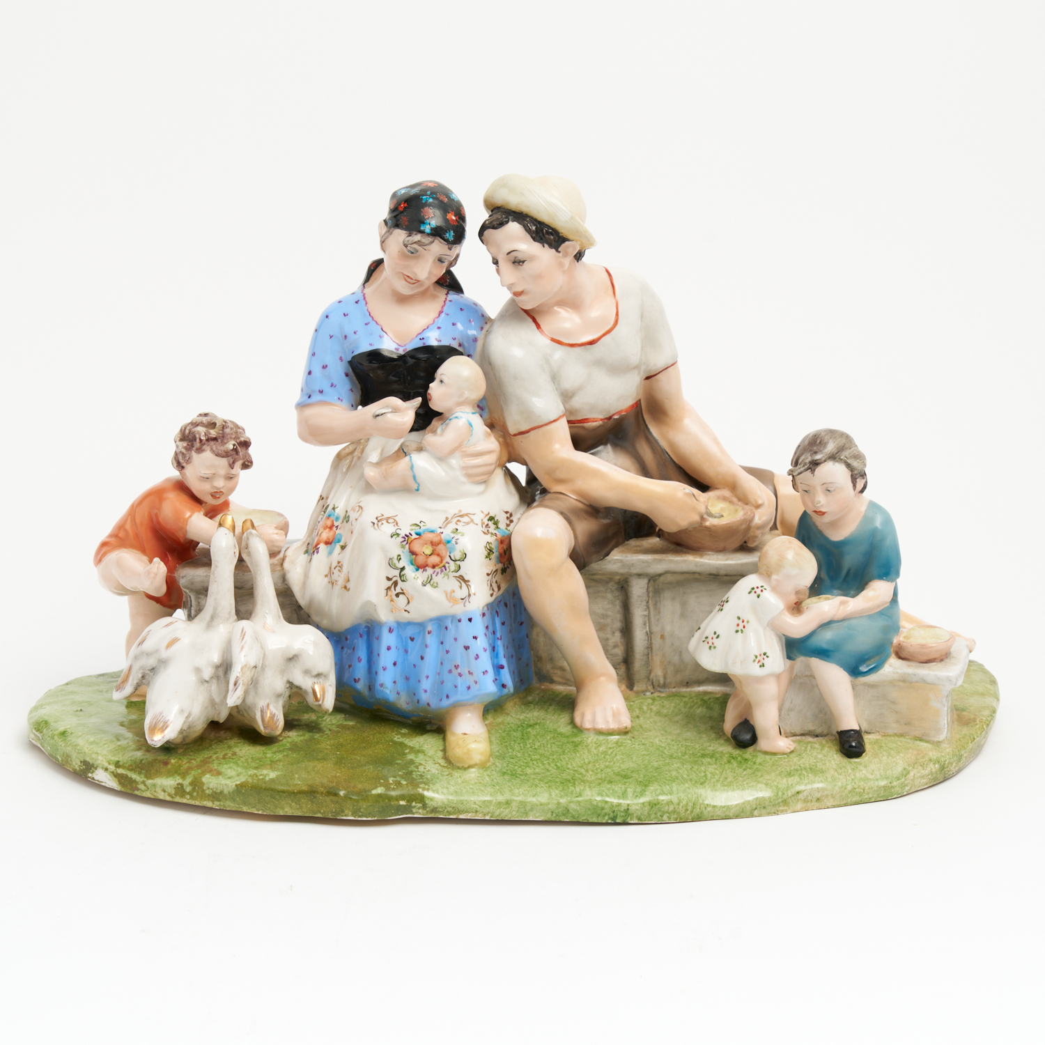 AN ITALIAN CERAMIC FIGURAL GROUP OF A FAMILY L.45.5CM