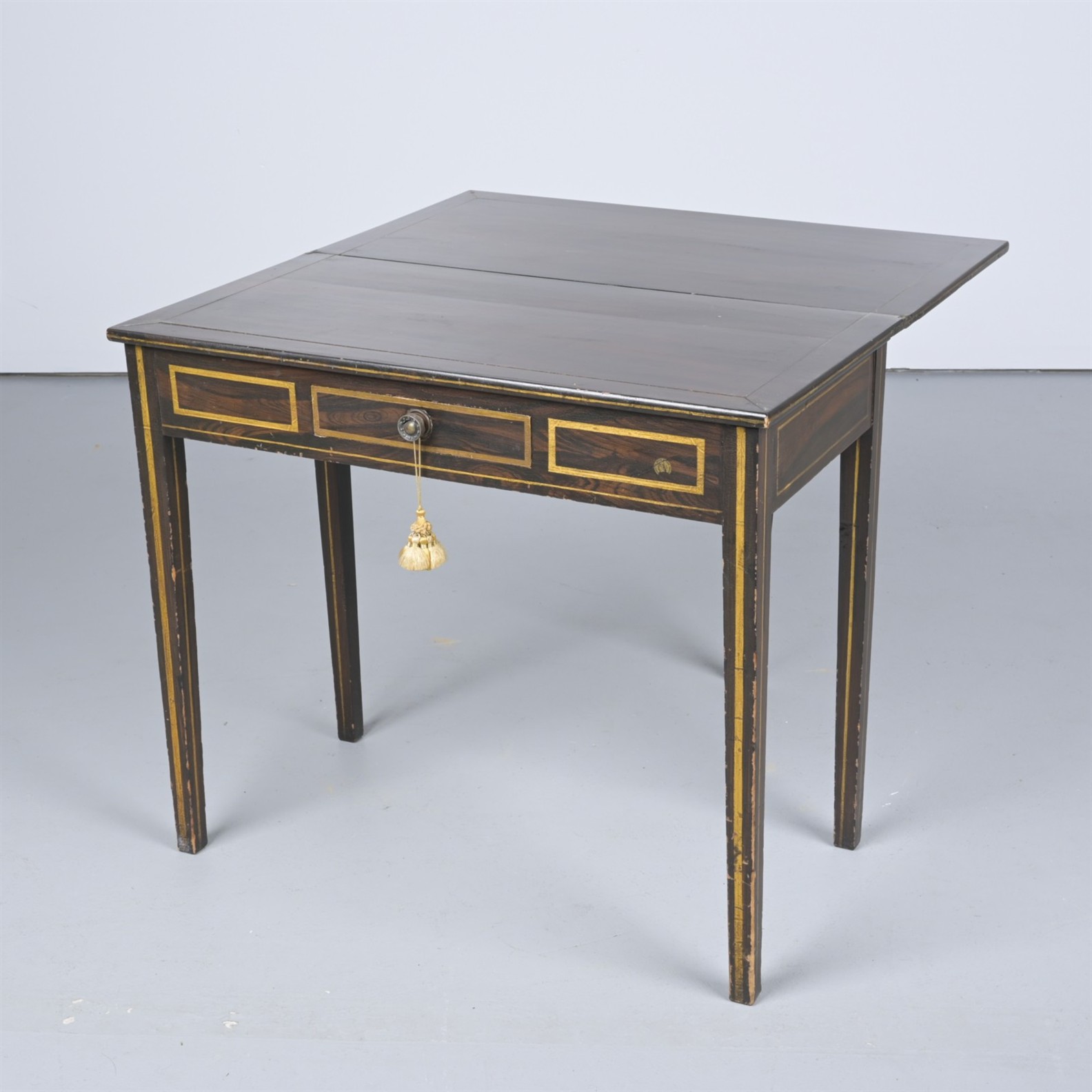 A GEORGE III TEA TABLE IN ORIGINAL PAINTED FINISH SIMULATING ROSEWOOD WITH GILT LINES (77CM H X 93CM W X 92CM D)