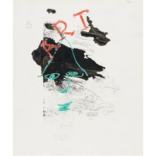 SIDNEY NOLAN (1917-1992) (Shakespeare Sonnets Man and Winged Skull) c.1963 mixed media on paper 63.5 x 52cm