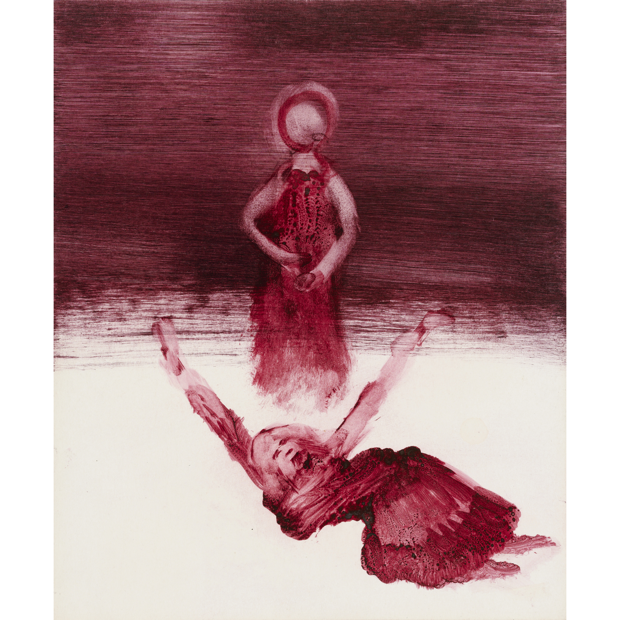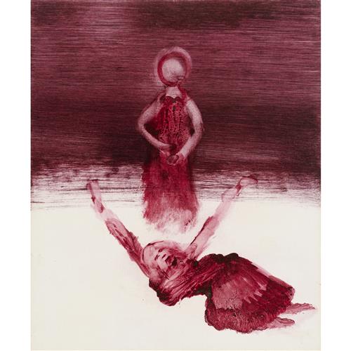 SIDNEY NOLAN (1917-1992) (Shakespeare Sonnets Man and Winged Skull) c.1963 mixed media on paper 63.5 x 52cm