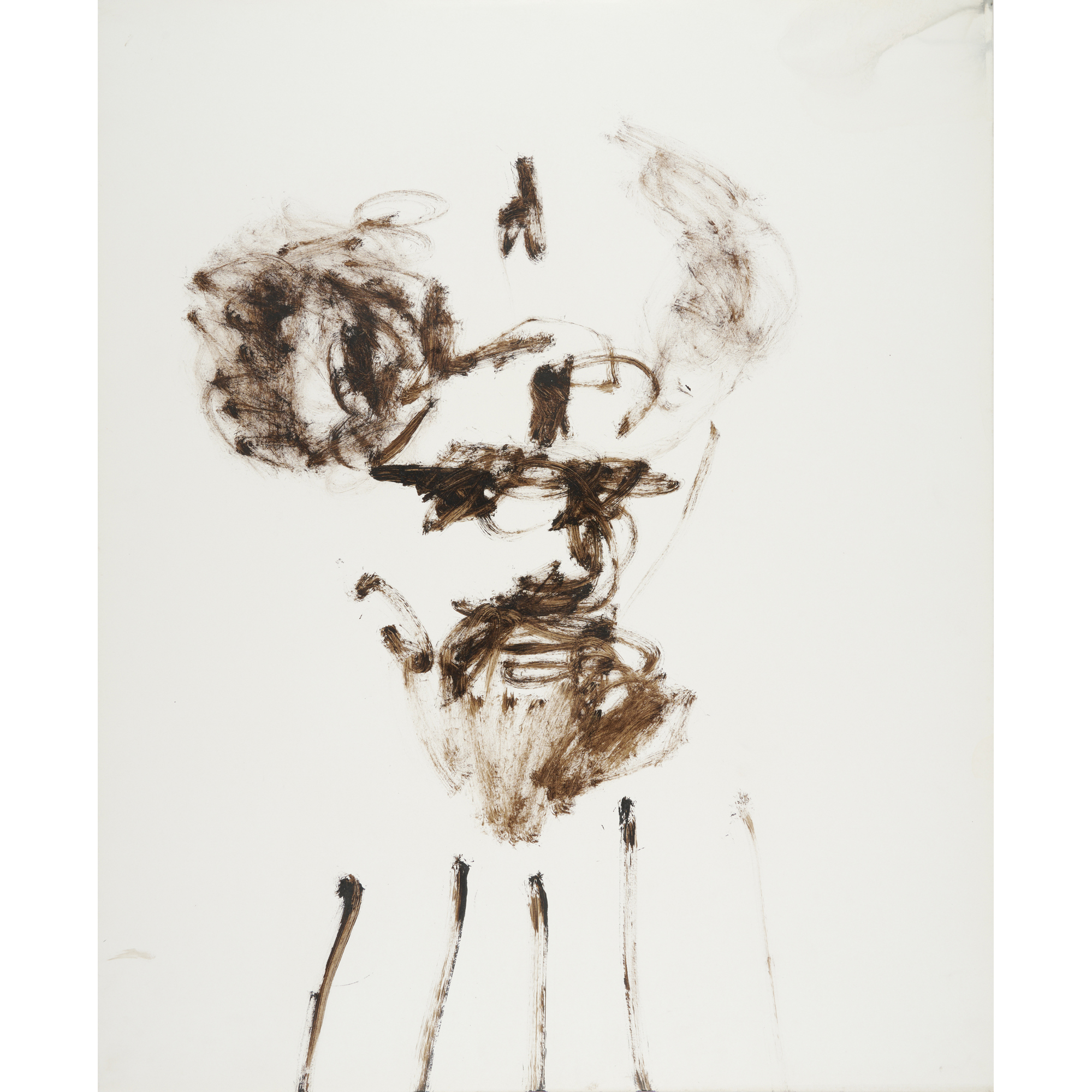 The work is in fair condition. All markings and textures are considered to be inherent. Minor handling marks and pigment spots all likely from the artist's studio. Creases to margins and water damage to the top right corner including paper loss. The work is backed and wrapped for protection.