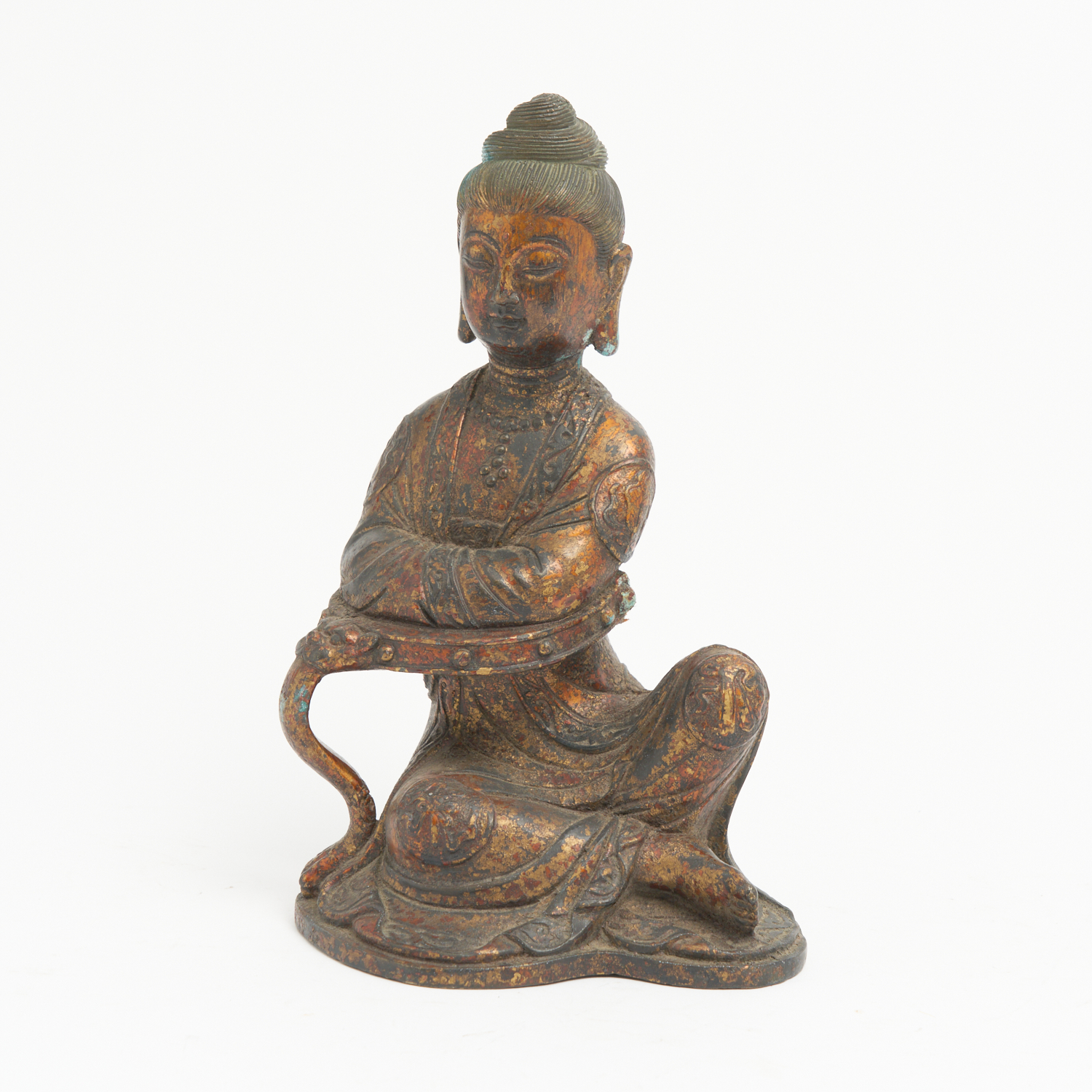 A CHINESE BRONZE FIGURE OF GUANYIN IN SEATED POSE H.26.5CM
