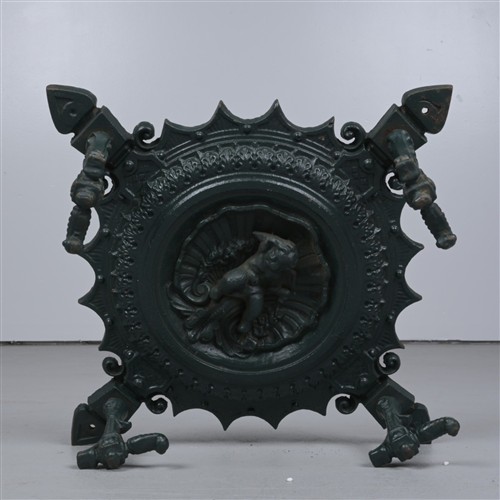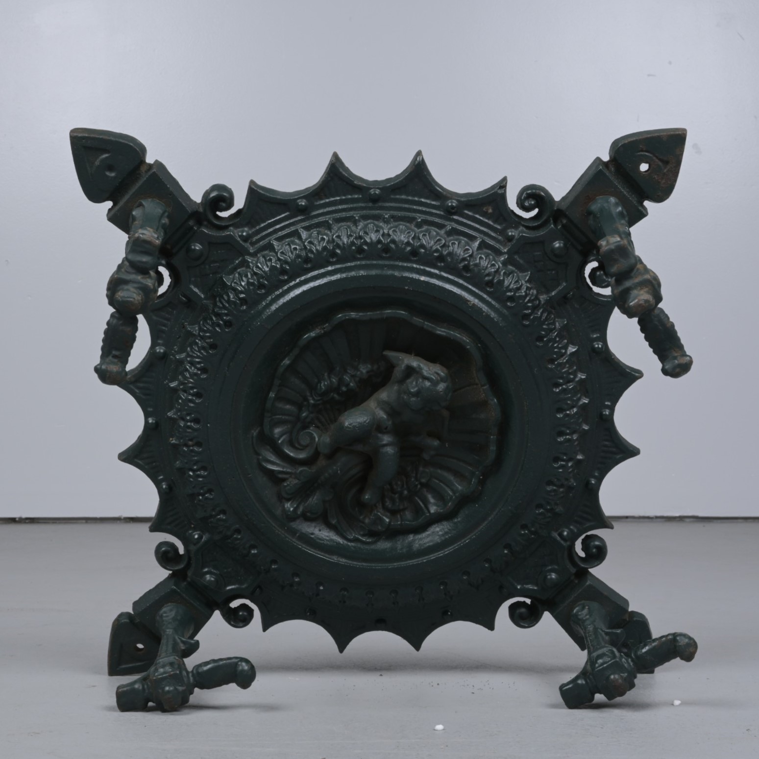 A CAST IRON COAT HANGER (46CM H X 46CM W X 18CM D) (THIS ITEM MUST BE REMOVED BY PROFESSIONAL CARRIERS OR CLIENTS. LEONARD JOEL STAFF CANNOT ASSIST WITH CARRYING OR DELIVERY OF THIS ITEM)