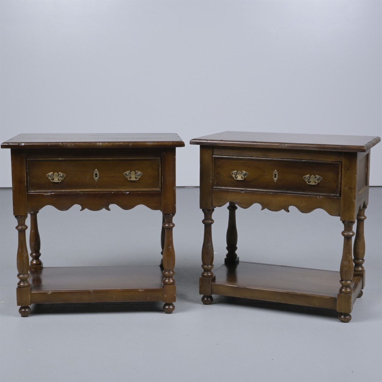 A PAIR OF LOW SIDE TABLES IN EARLY 18th CENTURY ENGLISH MANNER (65H X 65W X 40D CM)