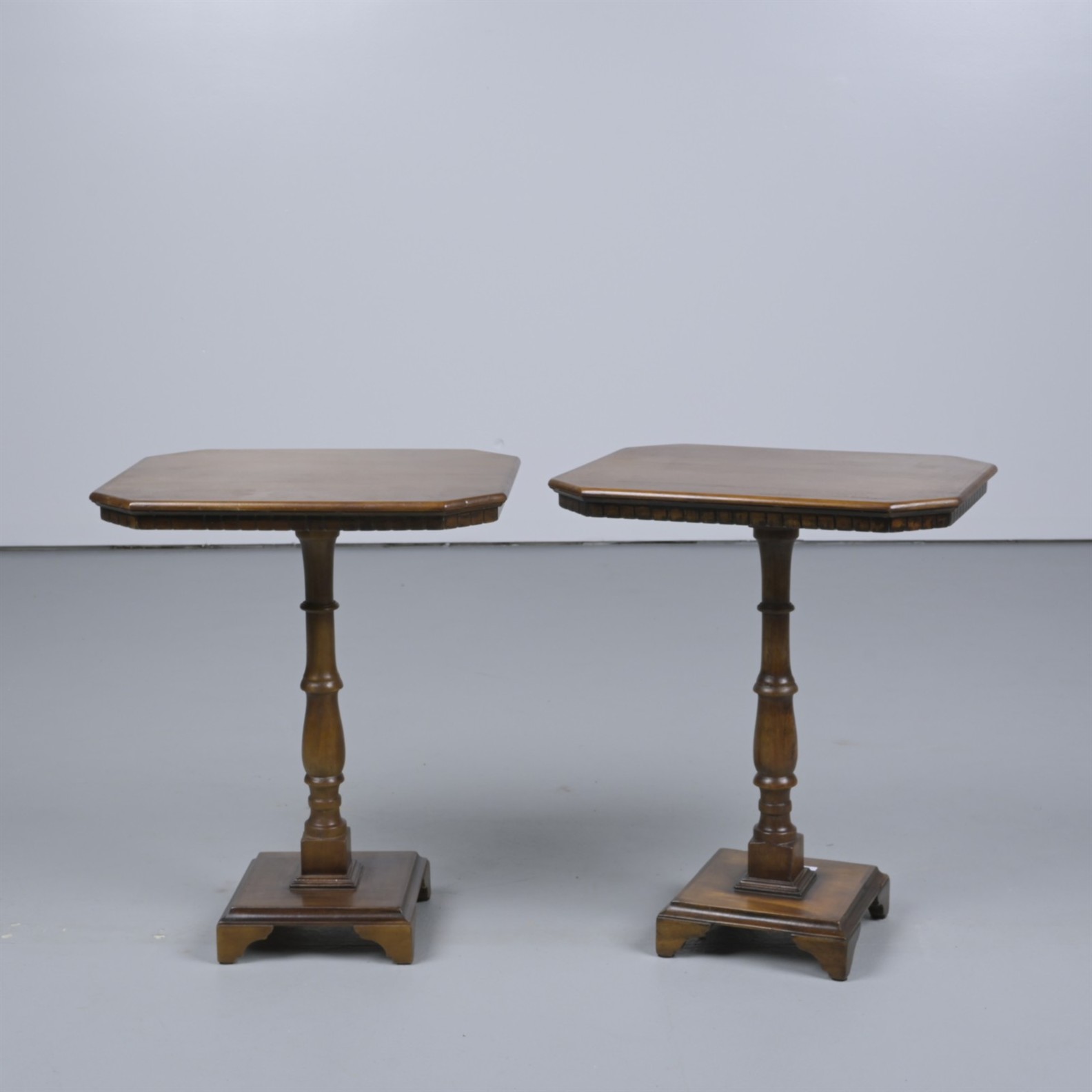 A PAIR OF ANTIQUE-STYLE MAHOGANY SIDE TABLES (61H X 51W X 41D CM)