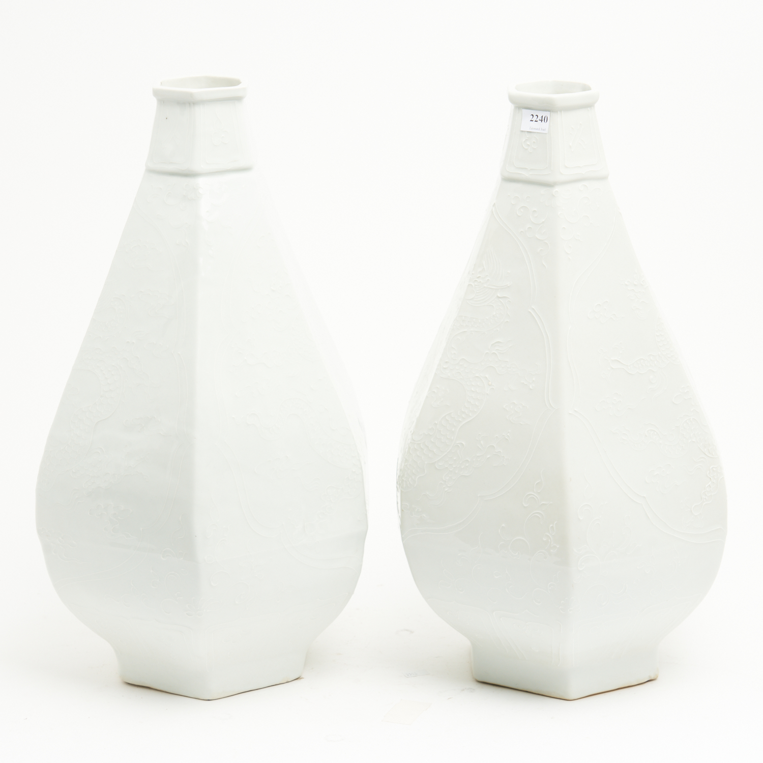 A PAIR OF LARGE AND IMPRESSIVE CHINESE HEXAGONAL FORM VASES DECORATED WITH DRAGONS H.53CM
