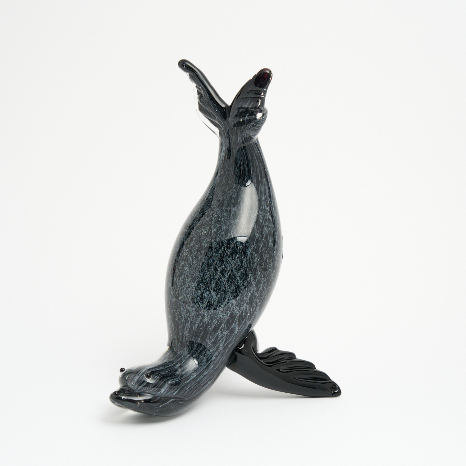 AN ART GLASS FIGURE OF A BALANCING SEAL H.31CM