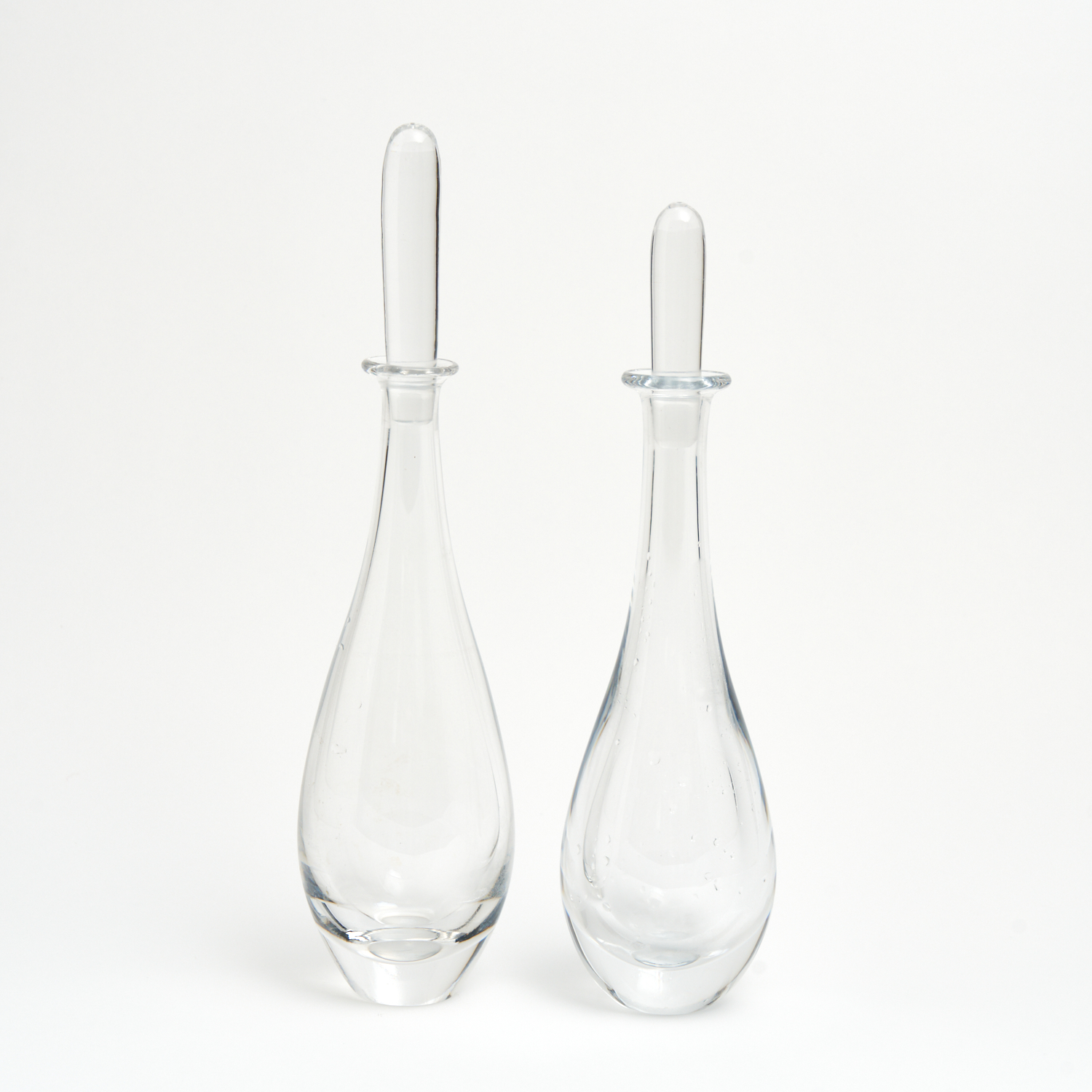 TWO ORREFORS TEAR DROP DECANTERS H.39CM (TALLEST)
