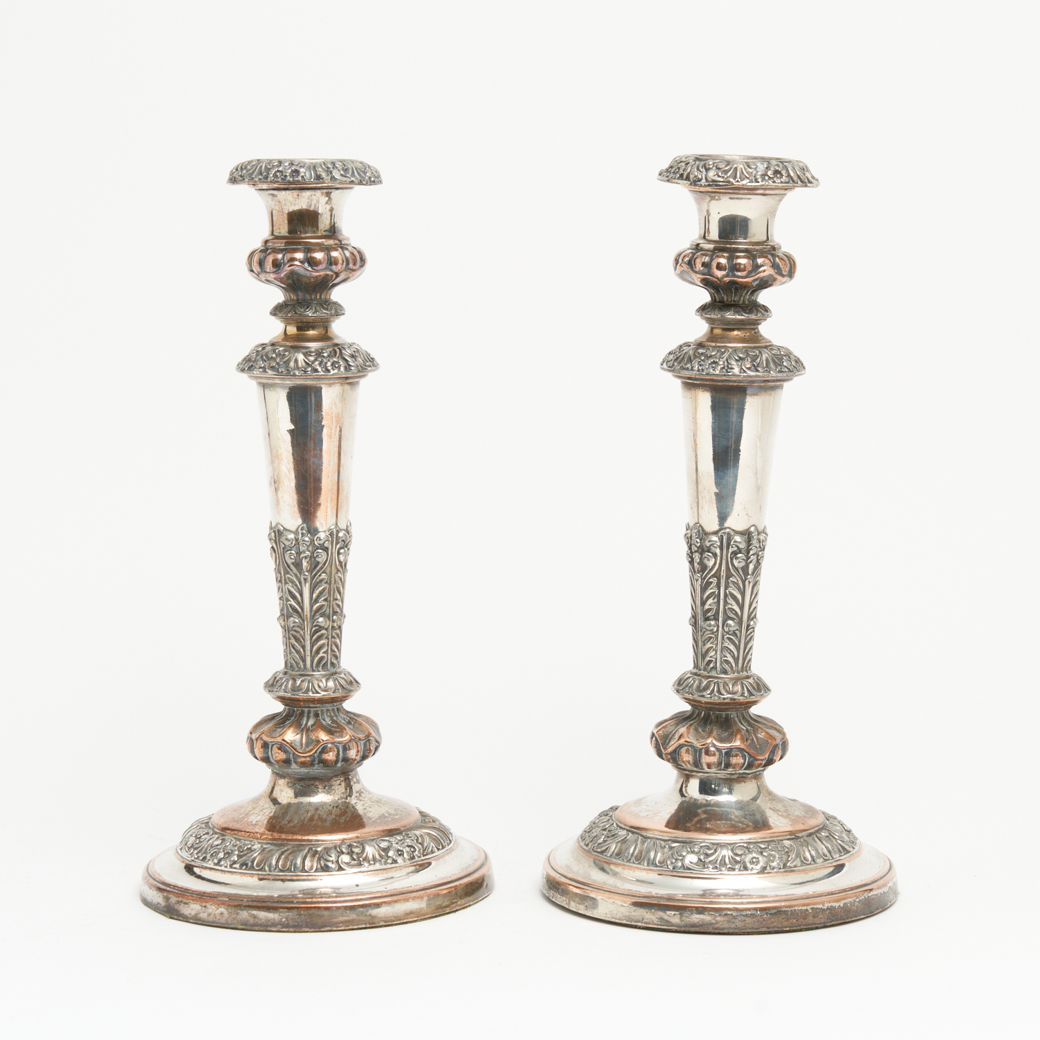 A PAIR OF ANTIQUE SHEFFIELD PLATE CANDLESTICKS H.29CM