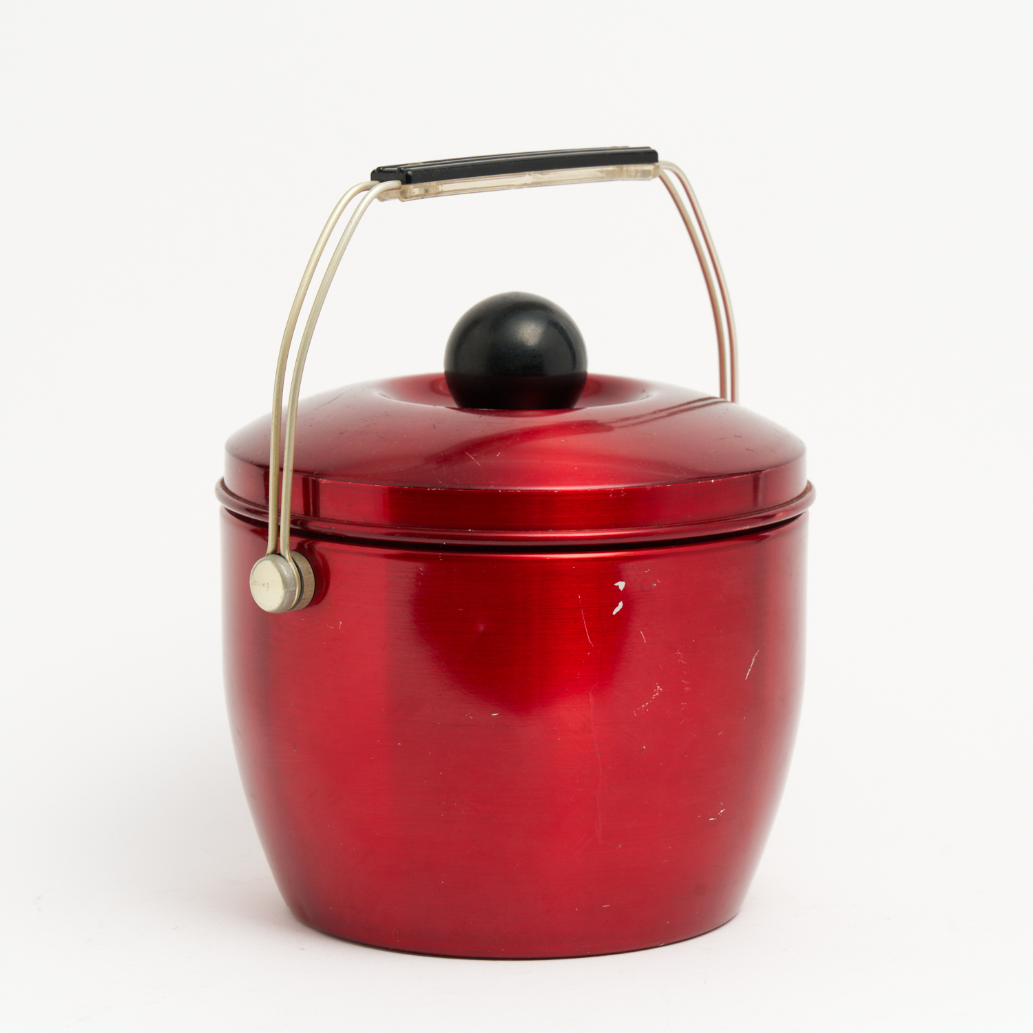 AN AUSTRALIAN MADE NOVO ANODISED ICE BUCKET IN RED (A/F) H.18CM