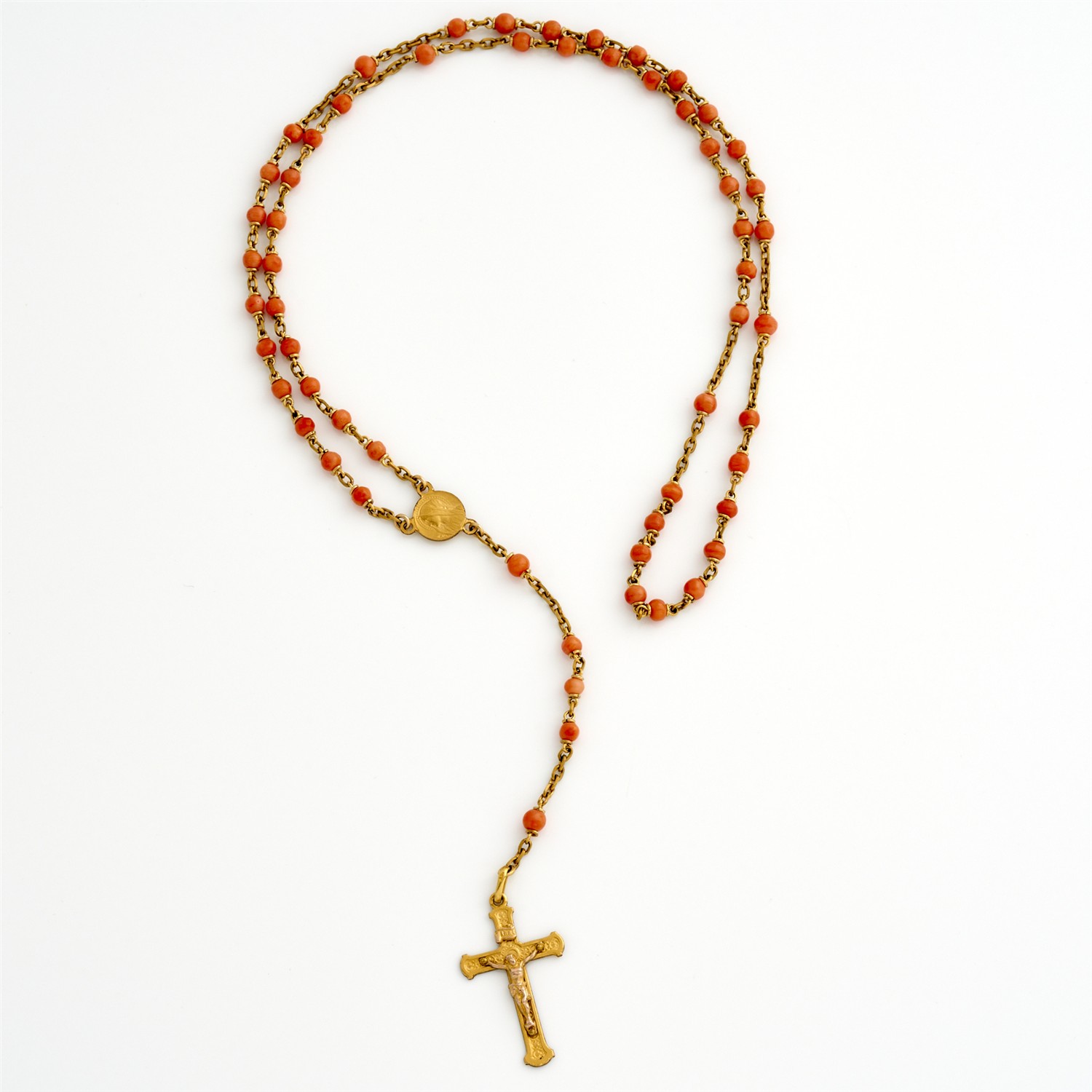 A CORAL ROSARY IN SILVER GILT, 860MM