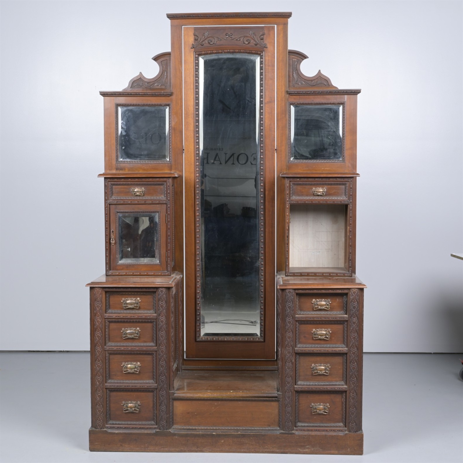A VICTORIAN BLACKWOOD DRESSING TABLE (208CM H X 128CM W X 51CM D) (THIS ITEM MUST BE REMOVED BY PROFESSIONAL CARRIERS OR CLIENTS. LEONARD JOEL STAFF CANNOT ASSIST WITH CARRYING OR DELIVERY OF THIS ITEM)