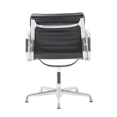 Black padded leather over an aluminium and metal frame on universal five star base. Herman Miller mark embossed to frame.
