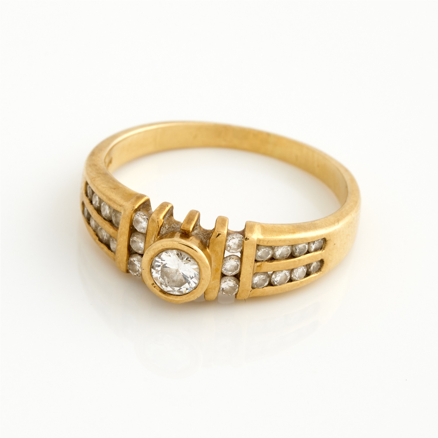 A DIAMOND BAND IN 18CT GOLD, SIZE O, 4.1GMS