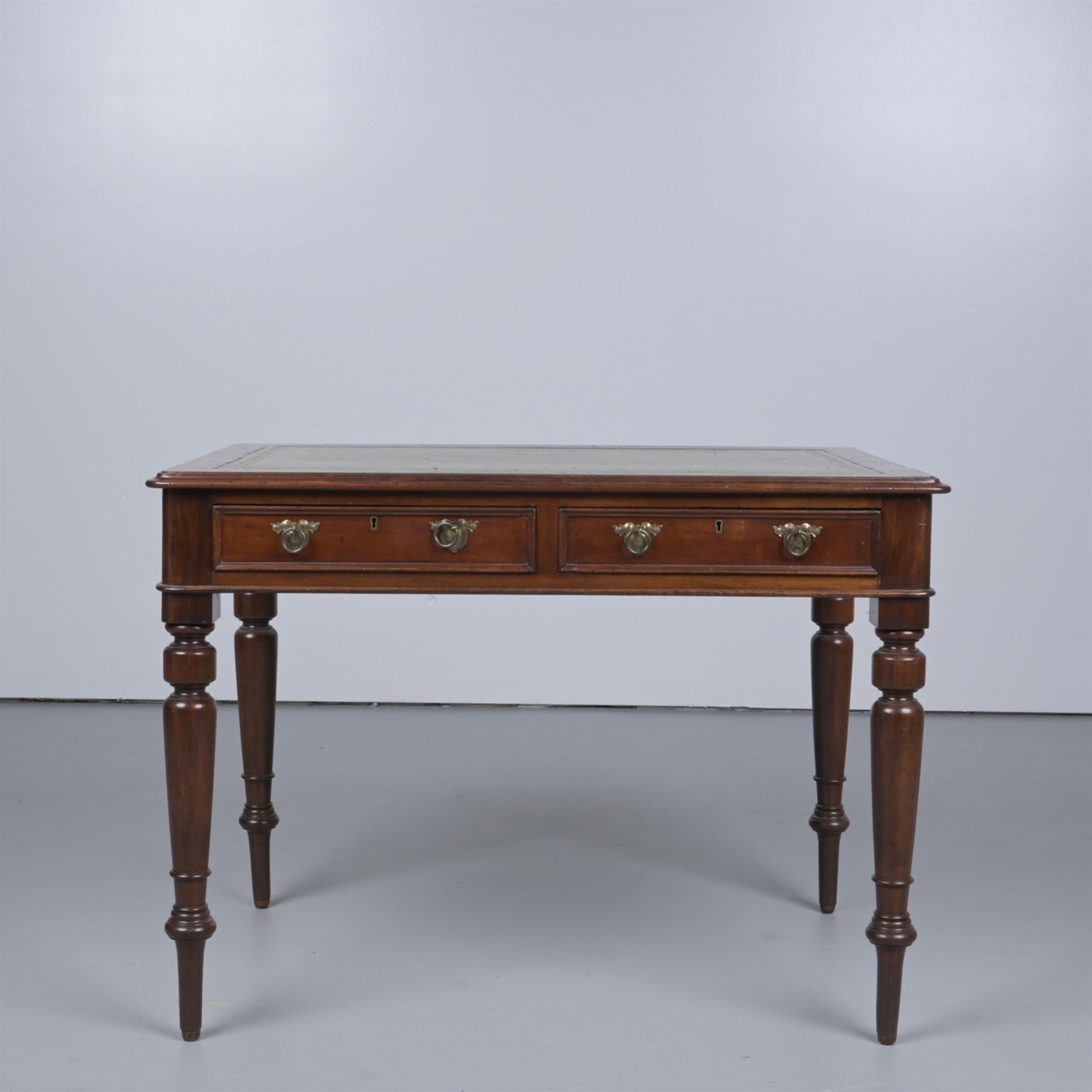 A VICTORIAN WRITING TABLE, THE TOP LEATHER-LINED (78CM H X 106CM W X 71CM D)