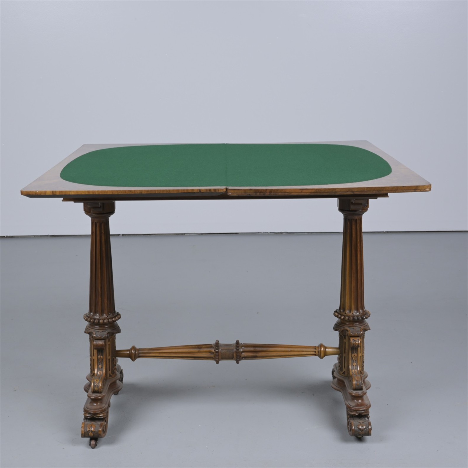 A GOOD VICTORIAN FIGURED WALNUT GAMES TABLE (75CM H X 91CM W X 91CM D)