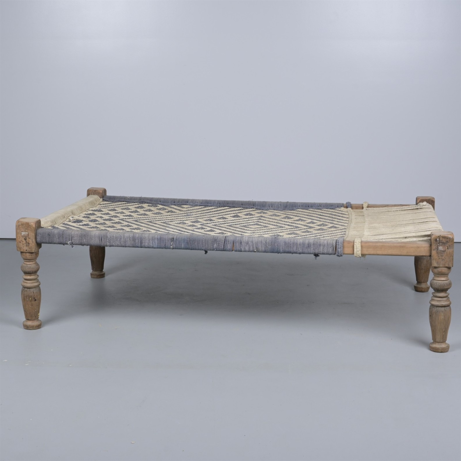 AN INDIAN HARDWOOD-FRAMED COTTON BED (58CM H X 122CM W X 213CM D) (THIS ITEM MUST BE REMOVED BY PROFESSIONAL CARRIERS OR CLIENTS. LEONARD JOEL STAFF CANNOT ASSIST WITH CARRYING OR DELIVERY OF THIS ITEM)