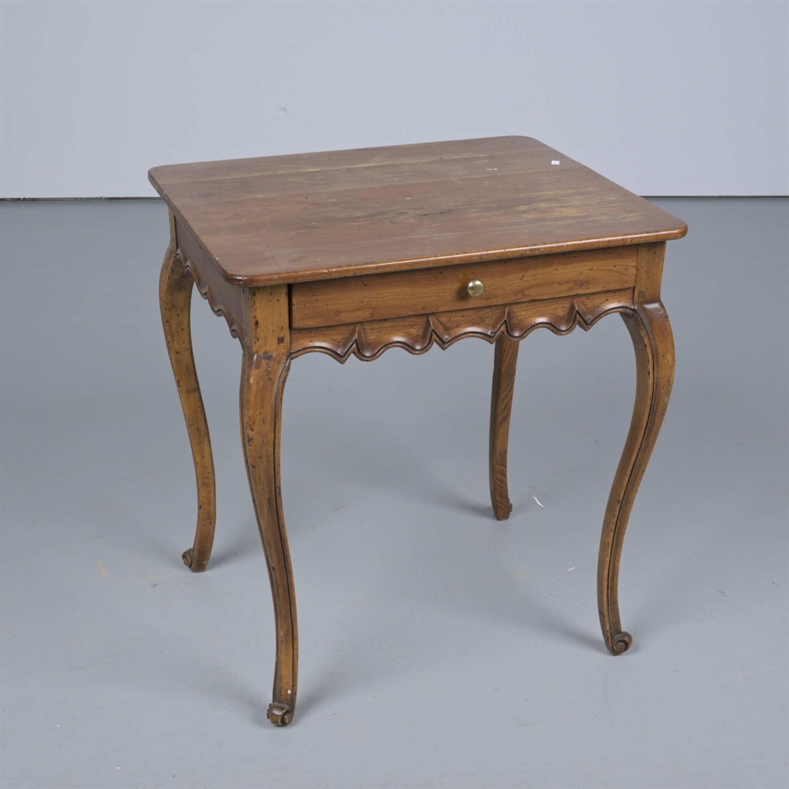 A FRUITWOOD SIDE TABLE IN FRENCH PROVINCIAL MANNER (A/F) (70CM H X 65CM W X 55CM D)