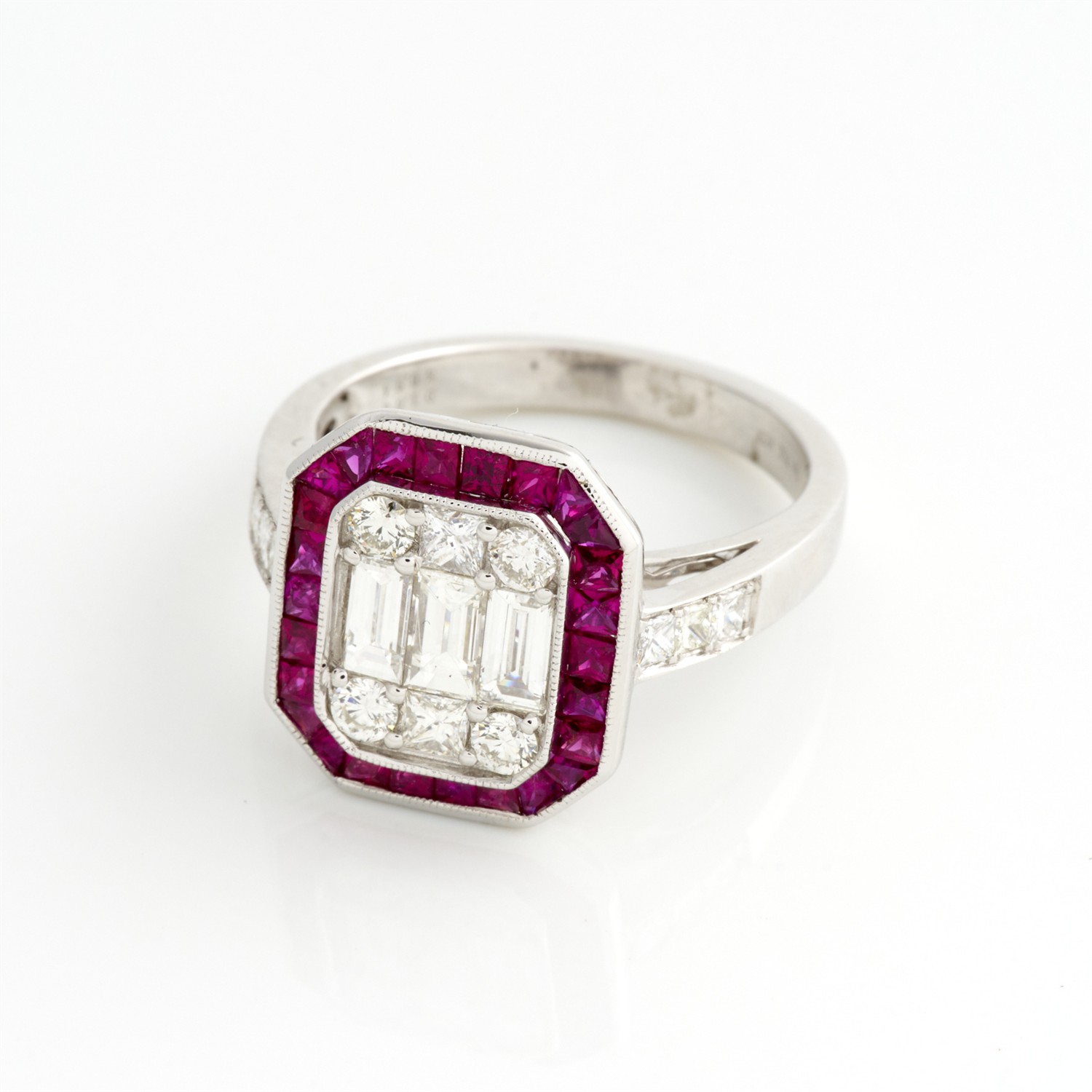 A RUBY AND DIAMOND RING IN 18CT WHITE GOLD, TOTAL DIAMOND WEIGHT APPROXIMATELY 1.0CT, G-H, SI2-VS2, TOTAL RUBY WEIGHT APPROXIMATELY 0.94CT, SIZE M 1/2, 5.4GMS