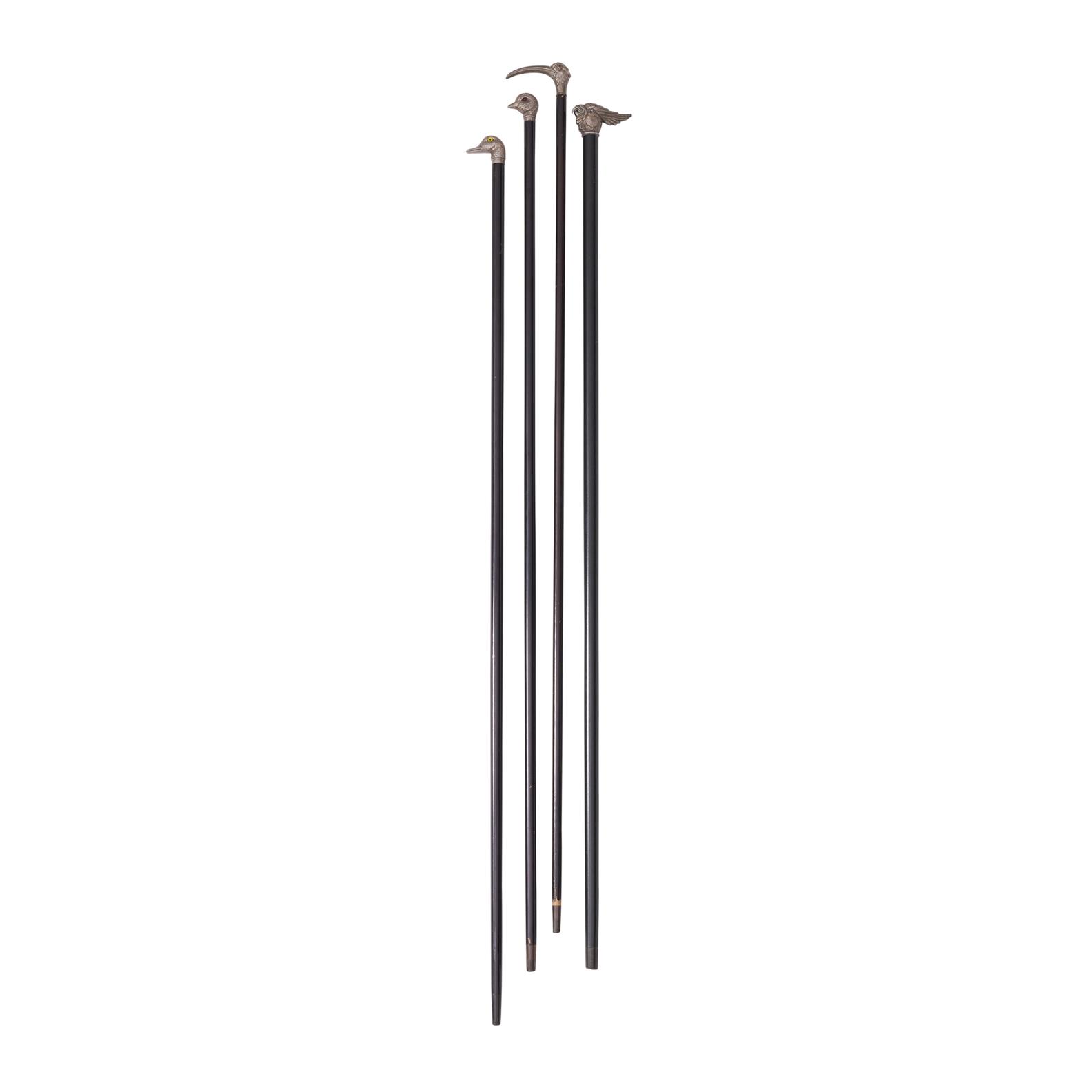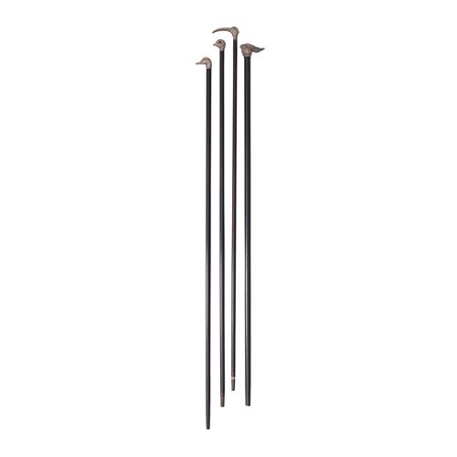 A GROUP OF FOUR CONTINENTAL SILVER MOUNTED EBONISED CANES