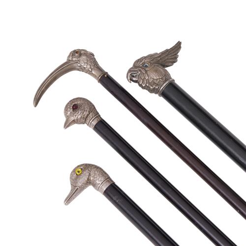 Each with a bird's head handle inset with glass eyes, various European hallmarks, one engraved 'Andre'.