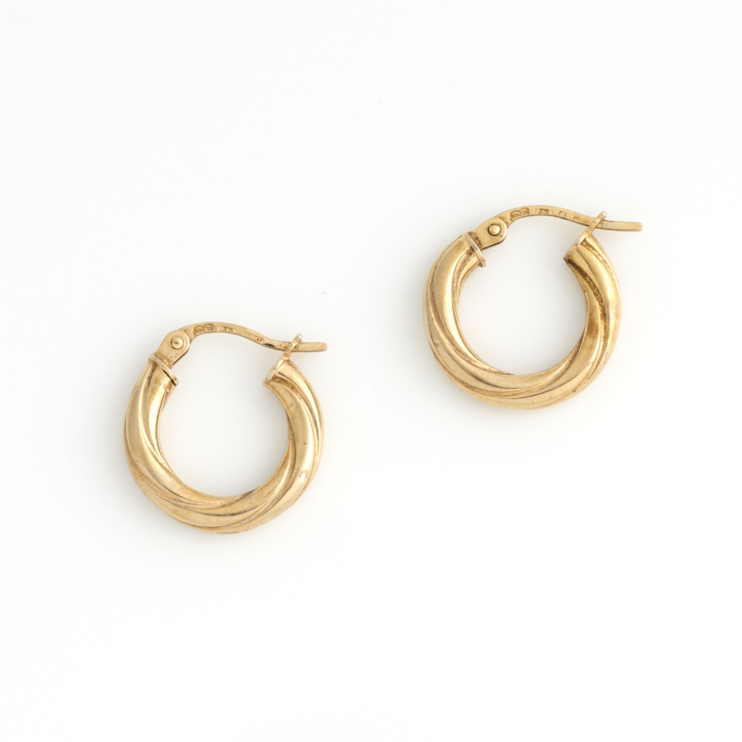 A PAIR OF ITALIAN HOOP EARRINGS IN 9CT GOLD, TOTAL DIAMETER 15MM, 0.93GMS