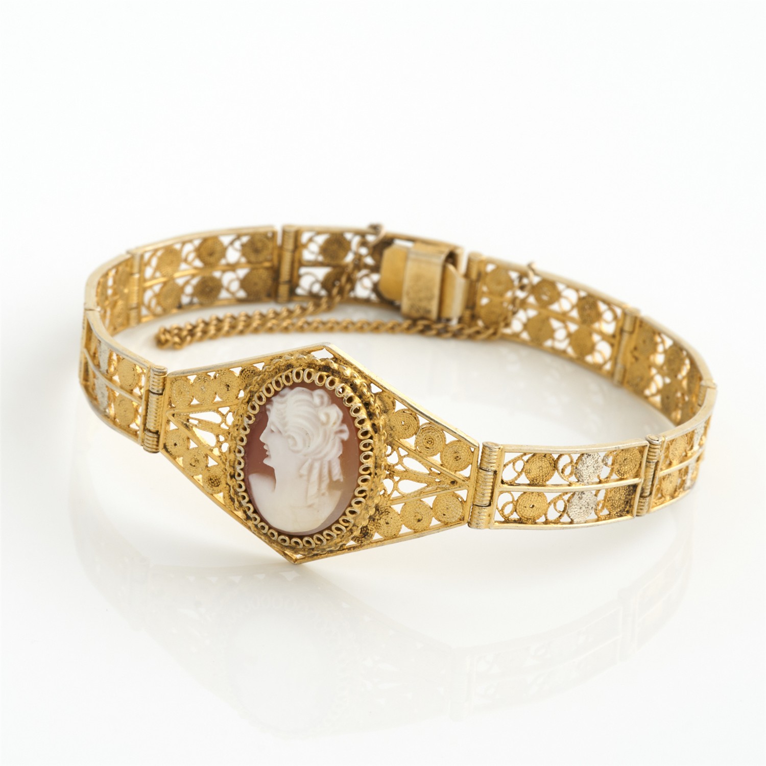 A VINTAGE OPENWORK CAMEO BRACELET IN SILVER GILT, INNER DIAMETER 60MM