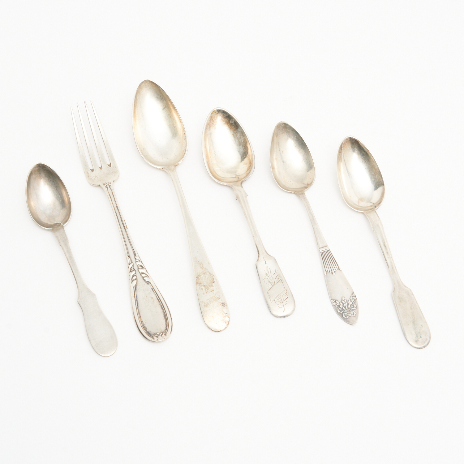 A COLLECTION OF CONTINENTAL SILVER SPOONS AND A FORK 250G H.21